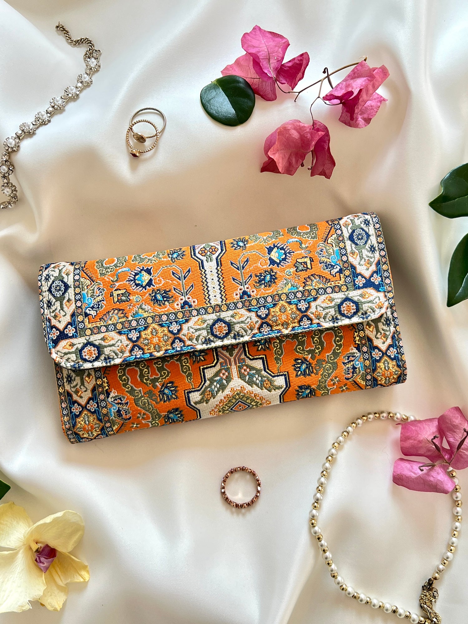This Boho crossbody bag is made of Turkish carpet patterned brocade fabric...