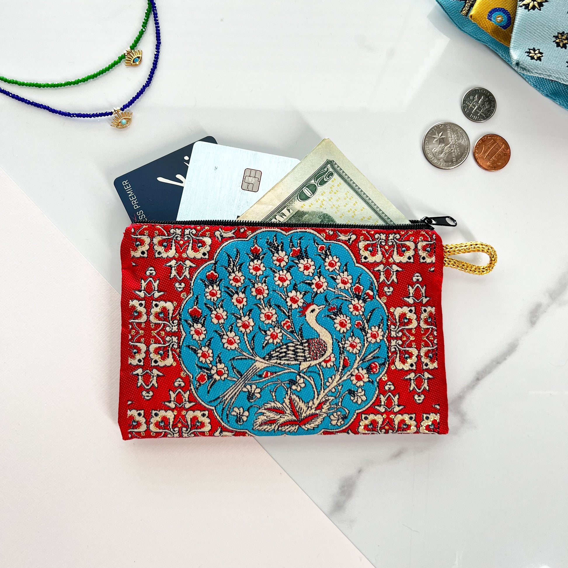 Peacock Design Coin Purse, Cute Handmade Fabric Pouch