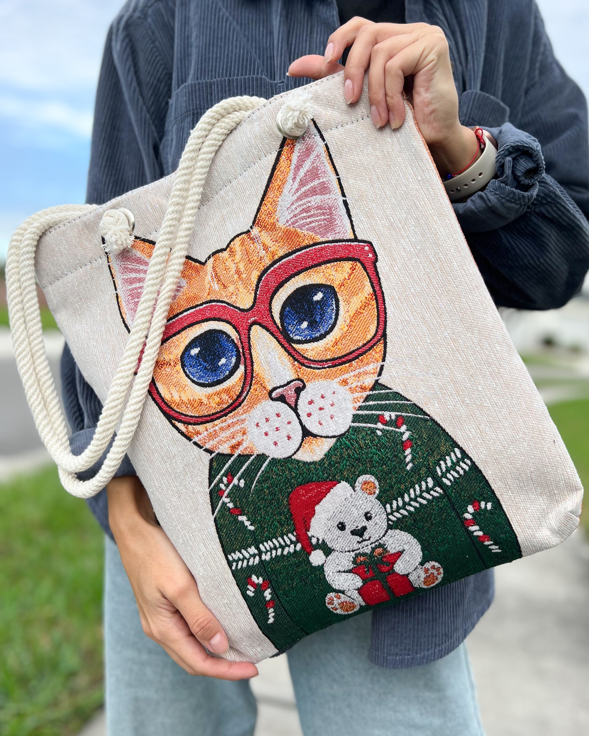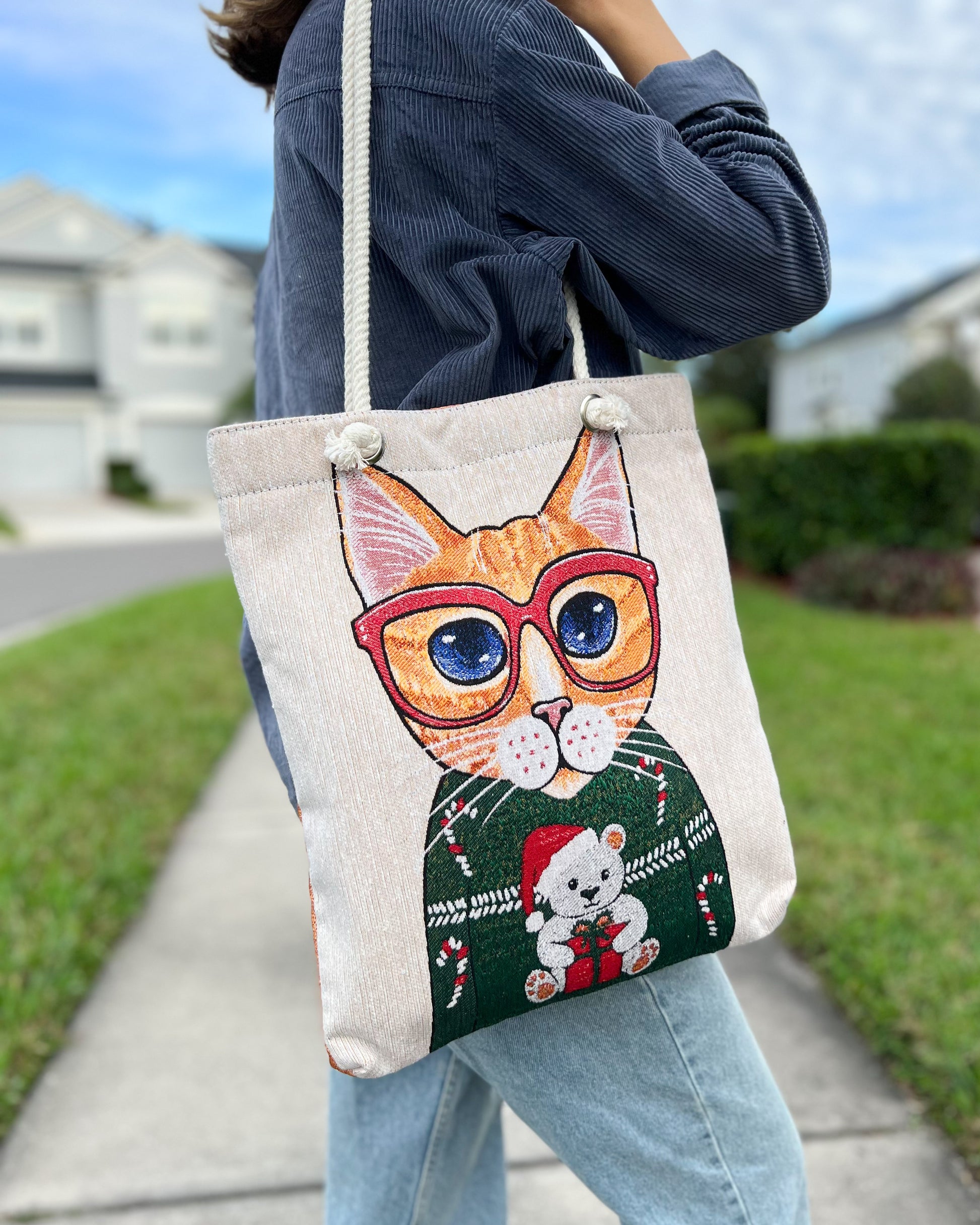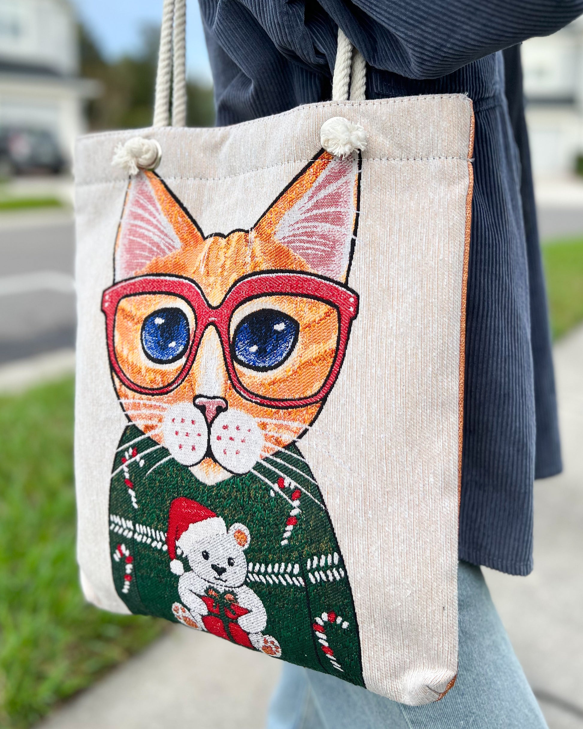 These cute tote bags are handmade from woven cotton fabric. The designs and colors are woven all together unlike printing. These tote bags can be used as a daily shoulder bag, tote bag and beach bag. The design is featured on 1 side while the back of the tote bag is blank. These cute bags can also be washed in the machine on gentle cycle.