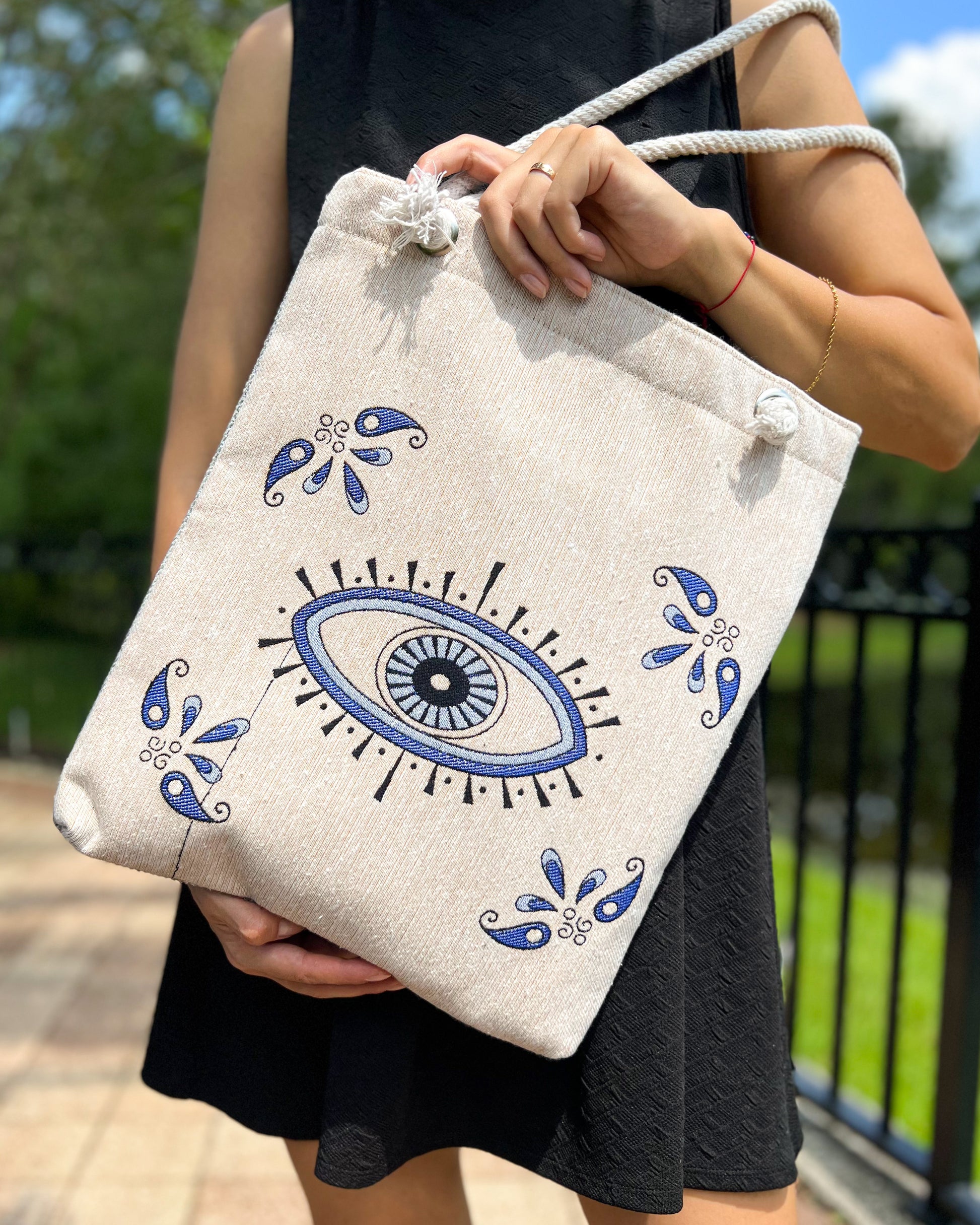 Evil Eye Tote Bag, Fabric Beach Bag, Coastal Bag for Women
