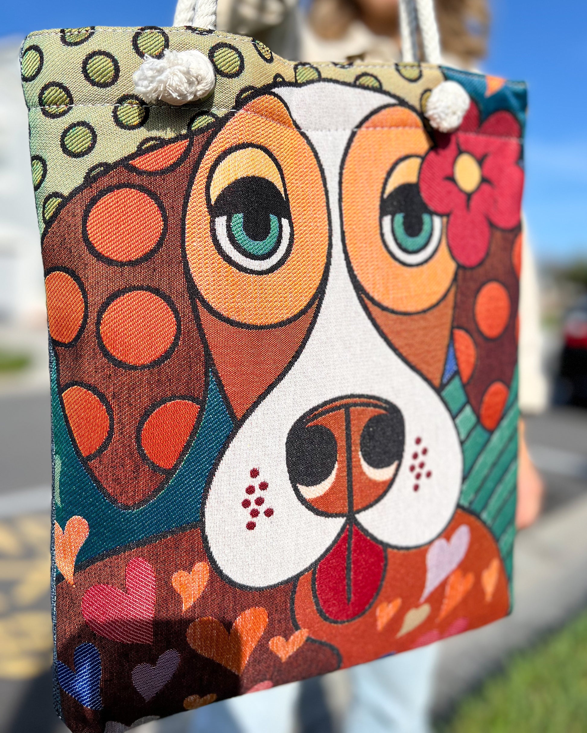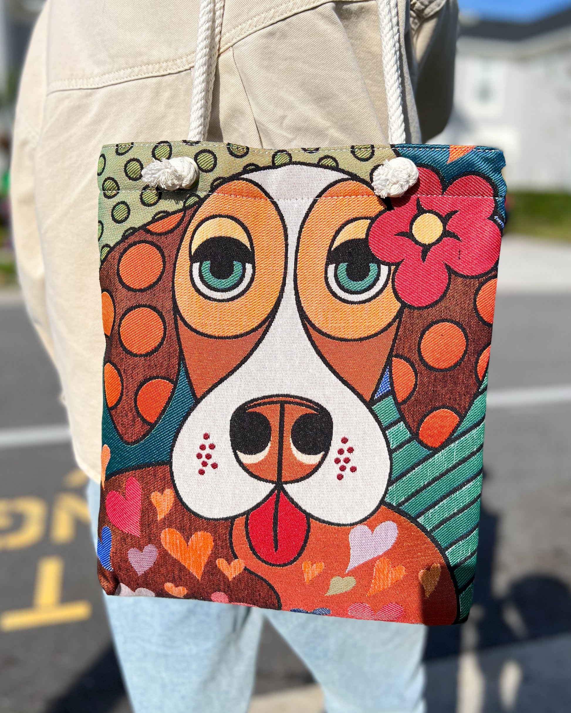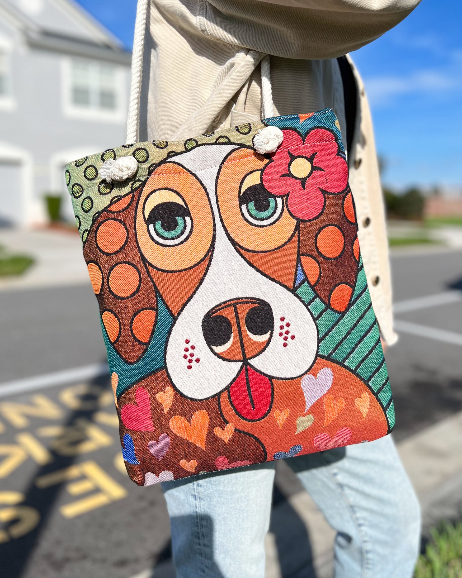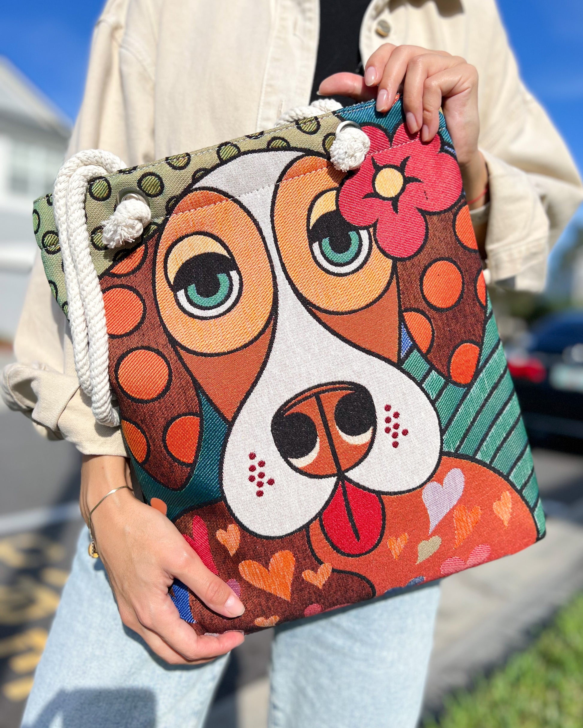 Woven Fabric Bag for Dog Lovers, Cute Bag for Women