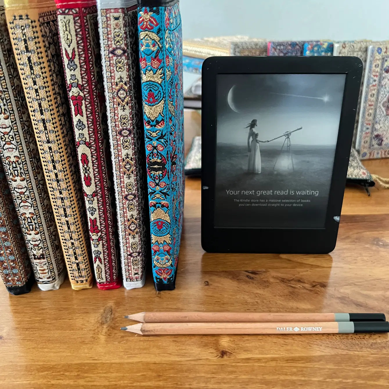 Our bohemian fabric notebooks are perfect for Diaries, Journals and a perfect companion for your work and meetings or school or even travels. Each boho notebook is filled with lined pages and has hardcover with Turkish carpet pattern designed brocade fabric on the top with a gold, glittery look and soft and luxurious touch.