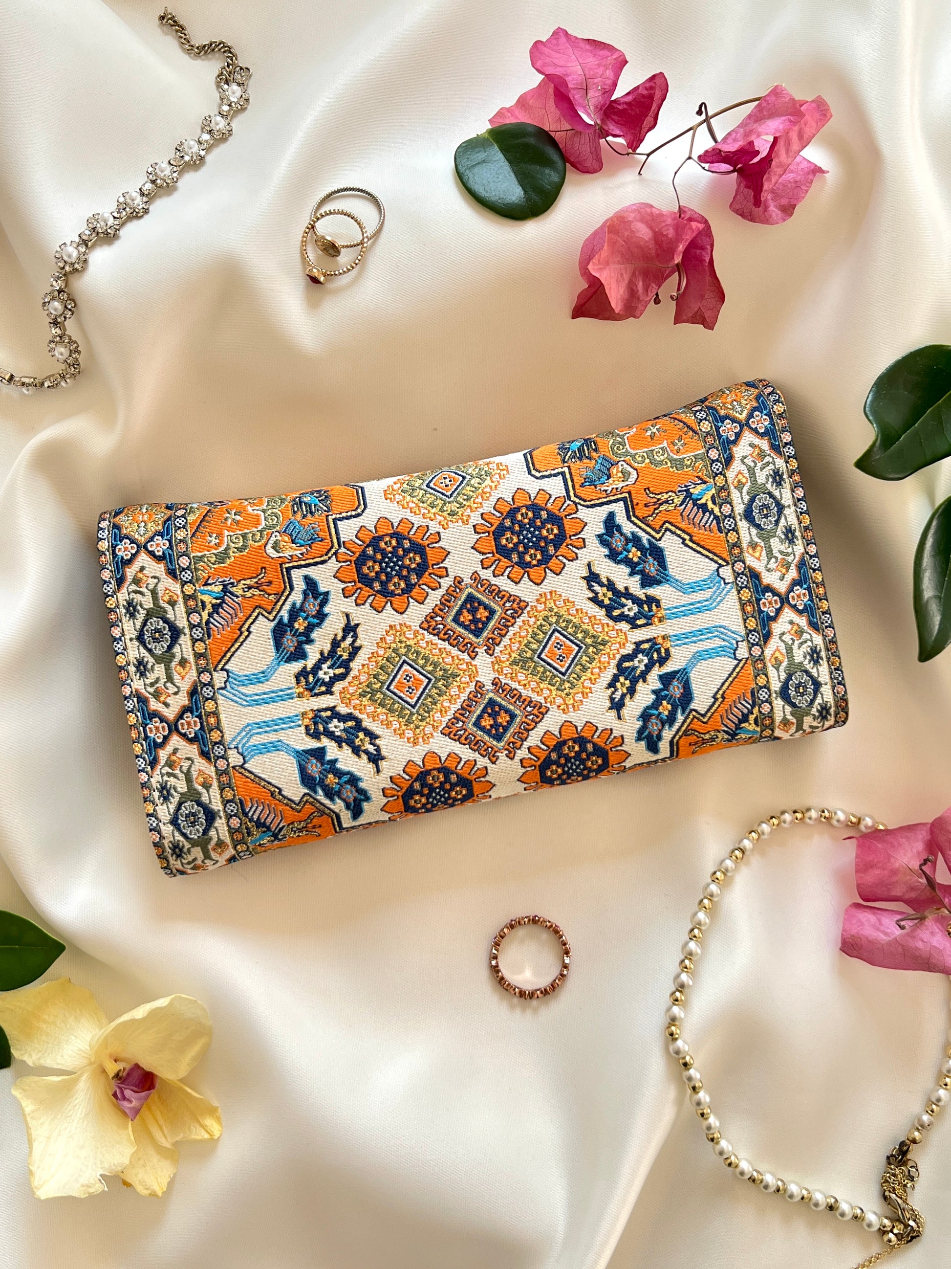Orange Boho Wallet, Fabric Handmade Wallet, Vegan Wallet