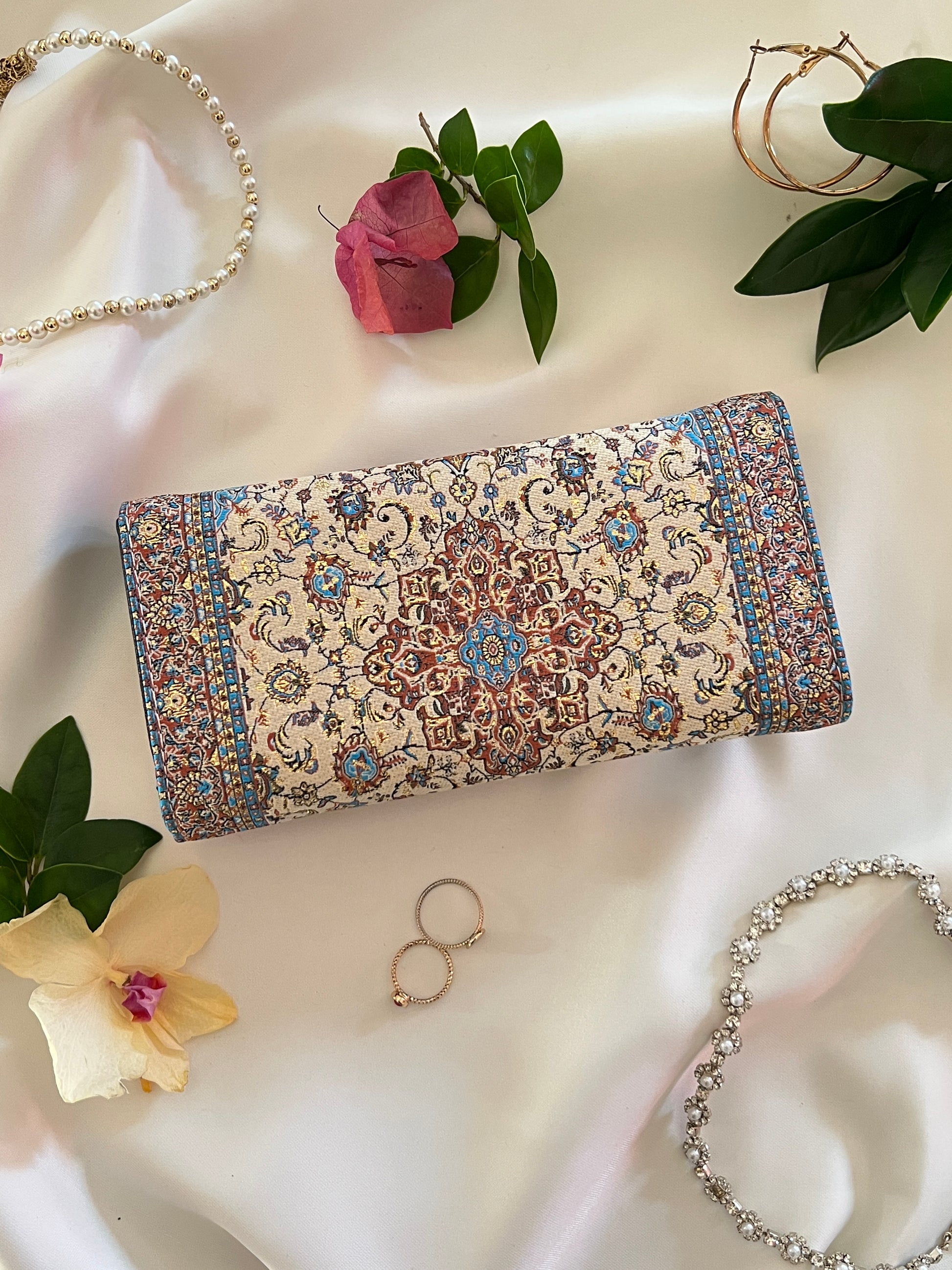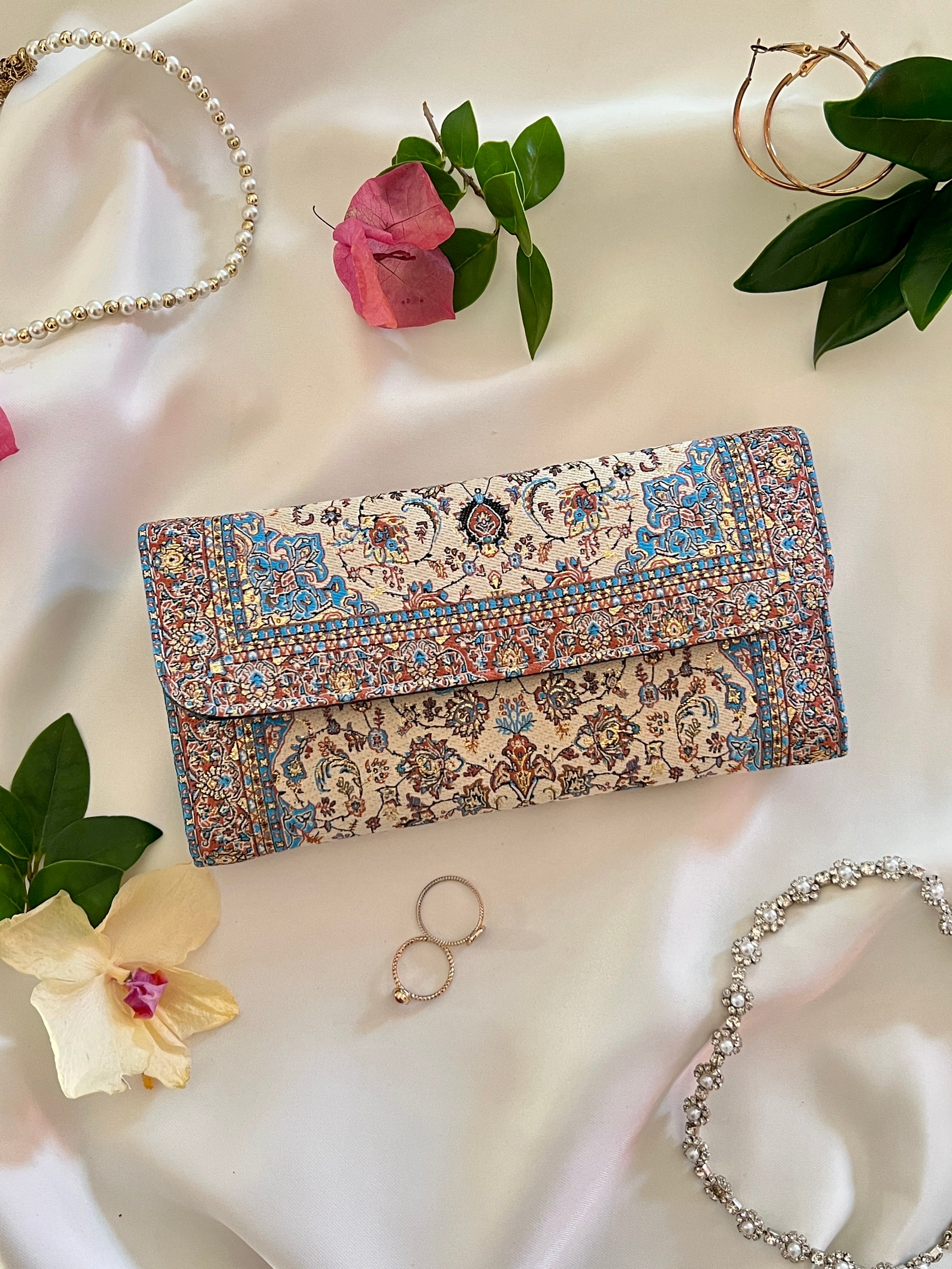 Blue Boho Wallet, Handmade Carpet Design Fabric Wallet