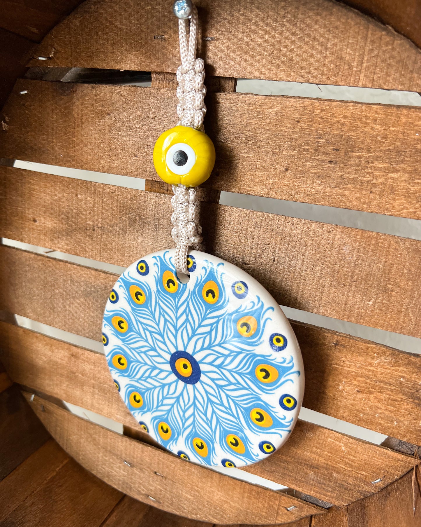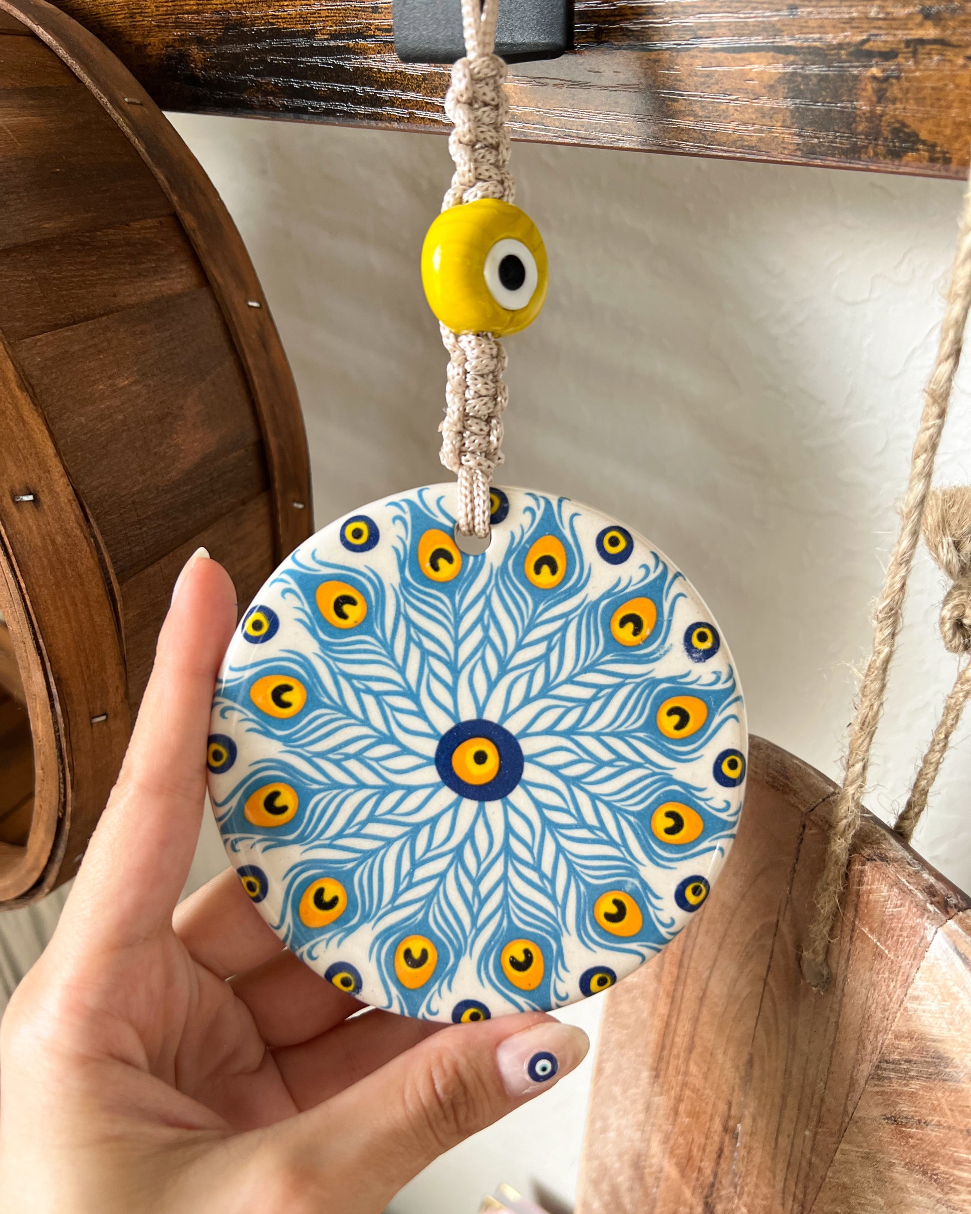 Ceramic Evil Eye Wall Hanging, Macrame Evil Eye