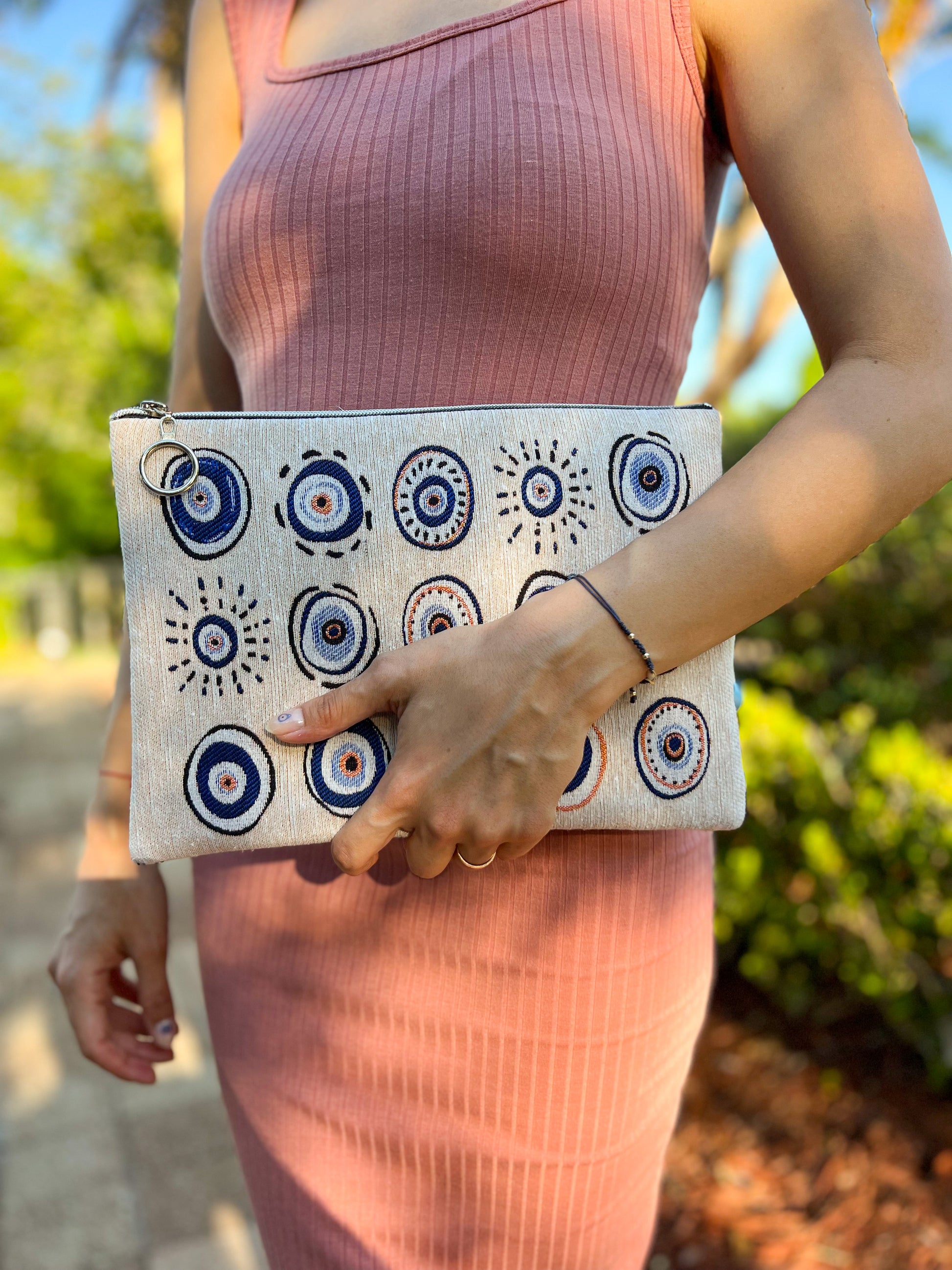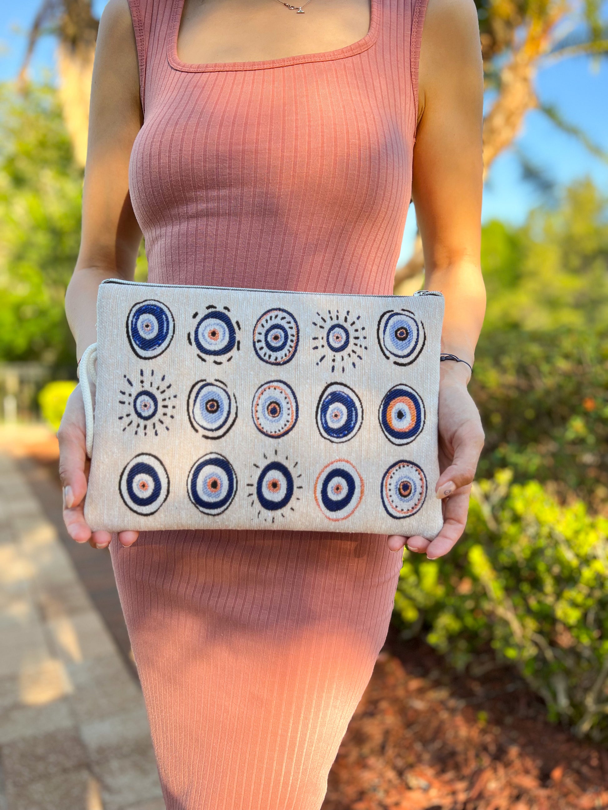 Evil Eye Clutch Bag, Fabric Slim Clutch Bag, iPad Sleeve