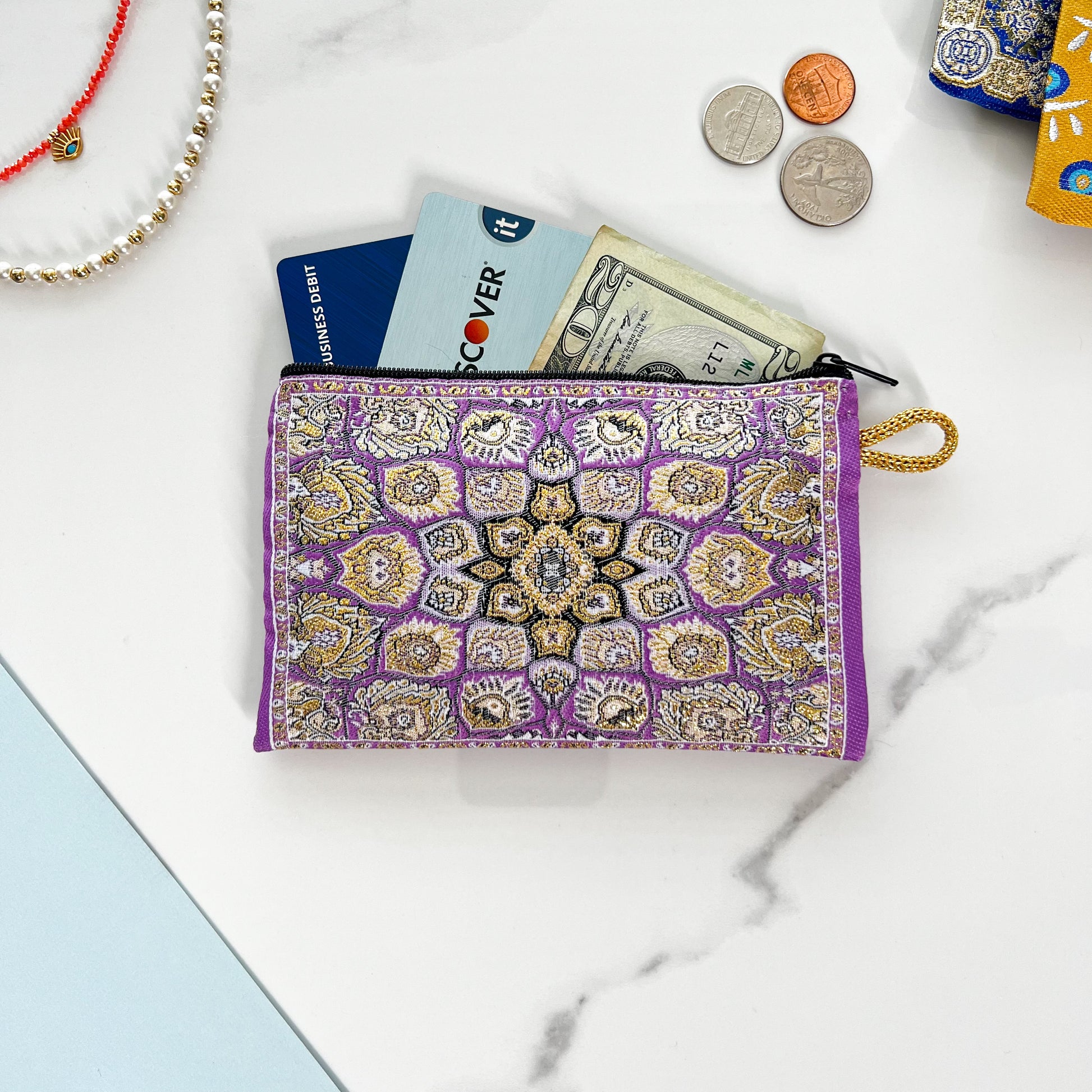 Boho Coin Purse, Handmade Zipper Pouch, Small Bag Organizer