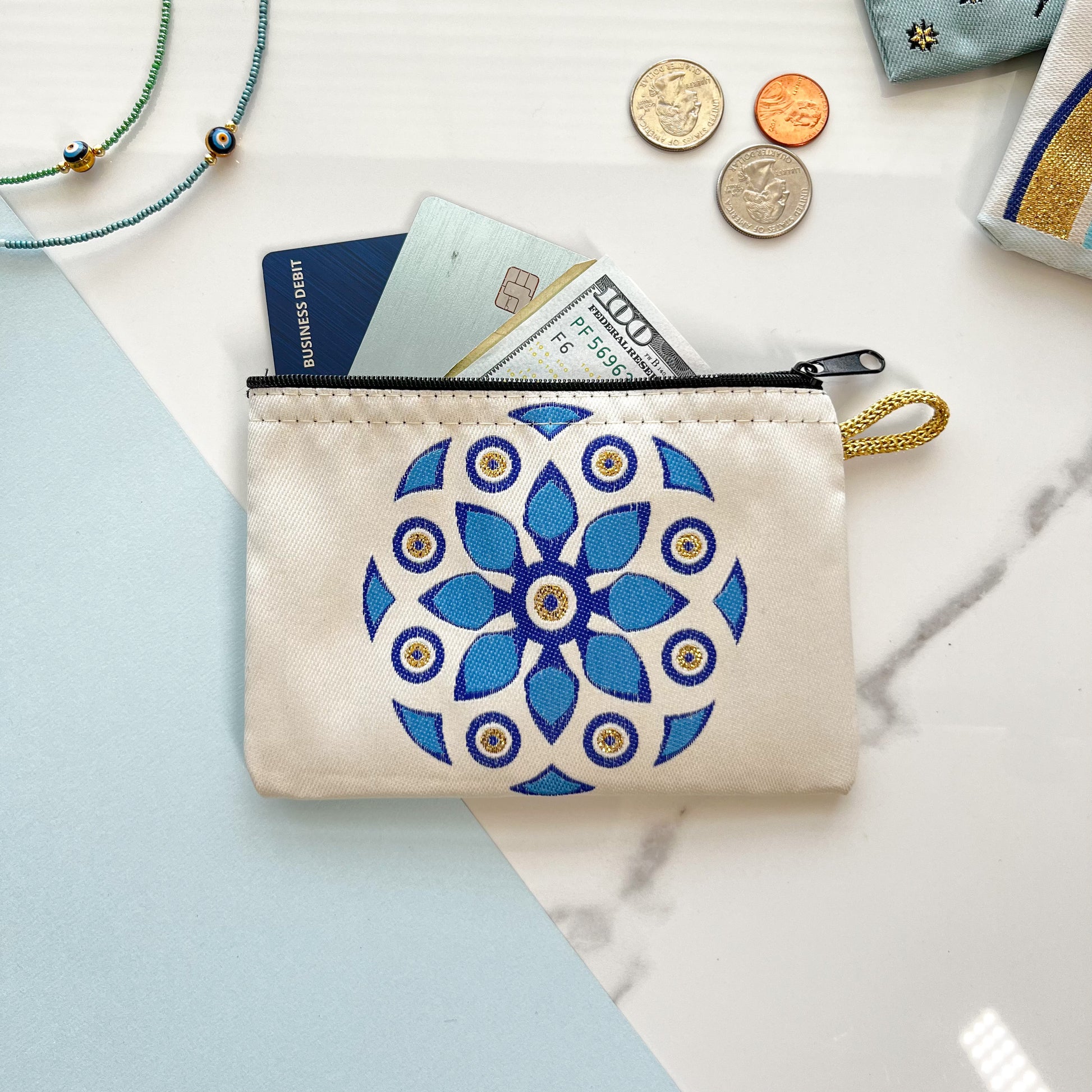 Boho Coin Purse, Fabric Coin Purse, Evil Eye Fabric Pouch