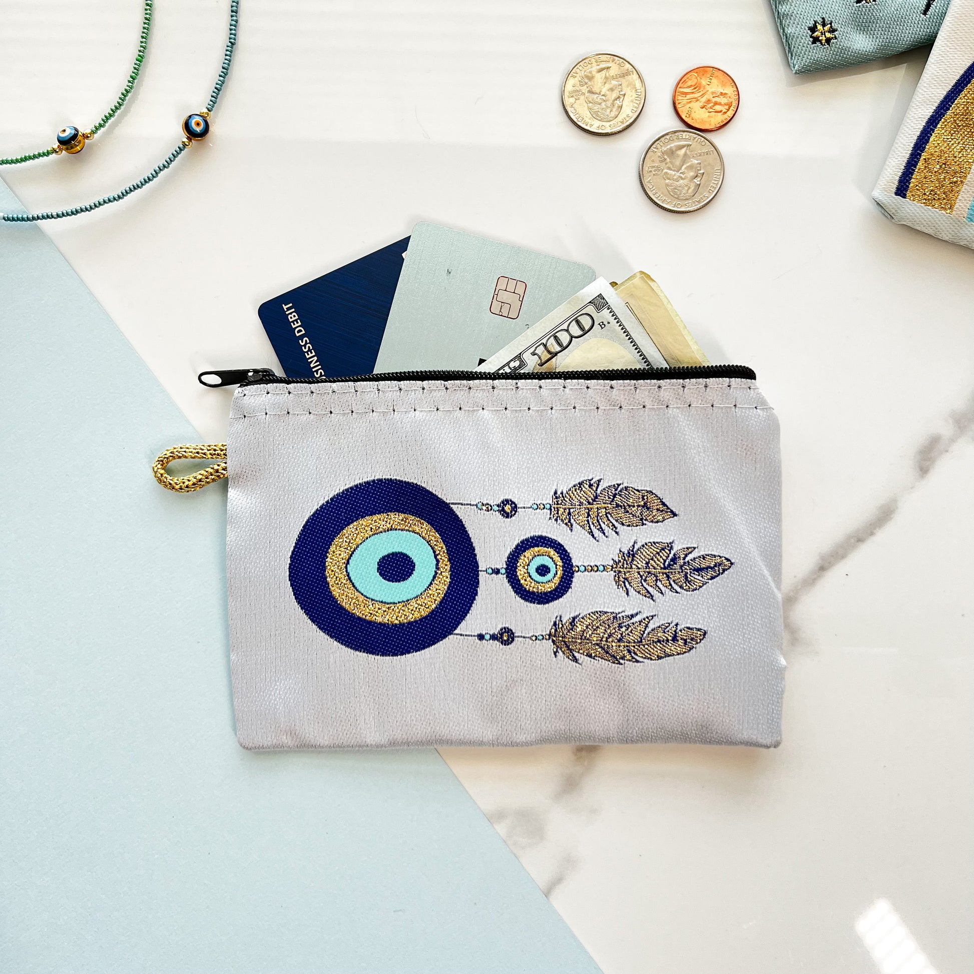 Boho Coin Purse, Evil Eye Gift, Handmade Coin Purse