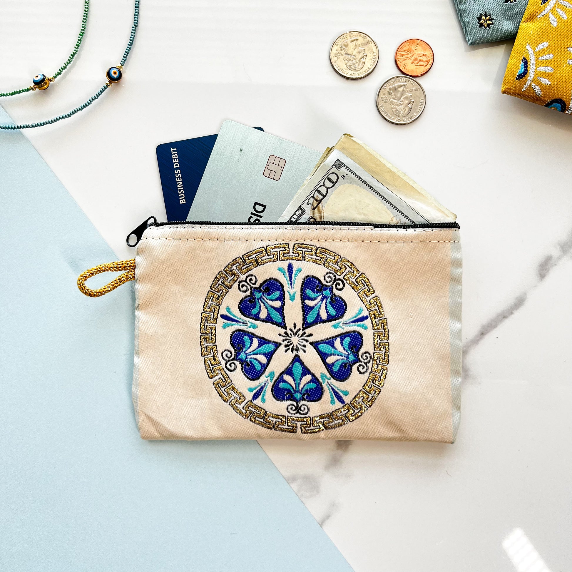 Boho Coin Purse, Handmade Coin Purse, Fabric Zipper Pouch
