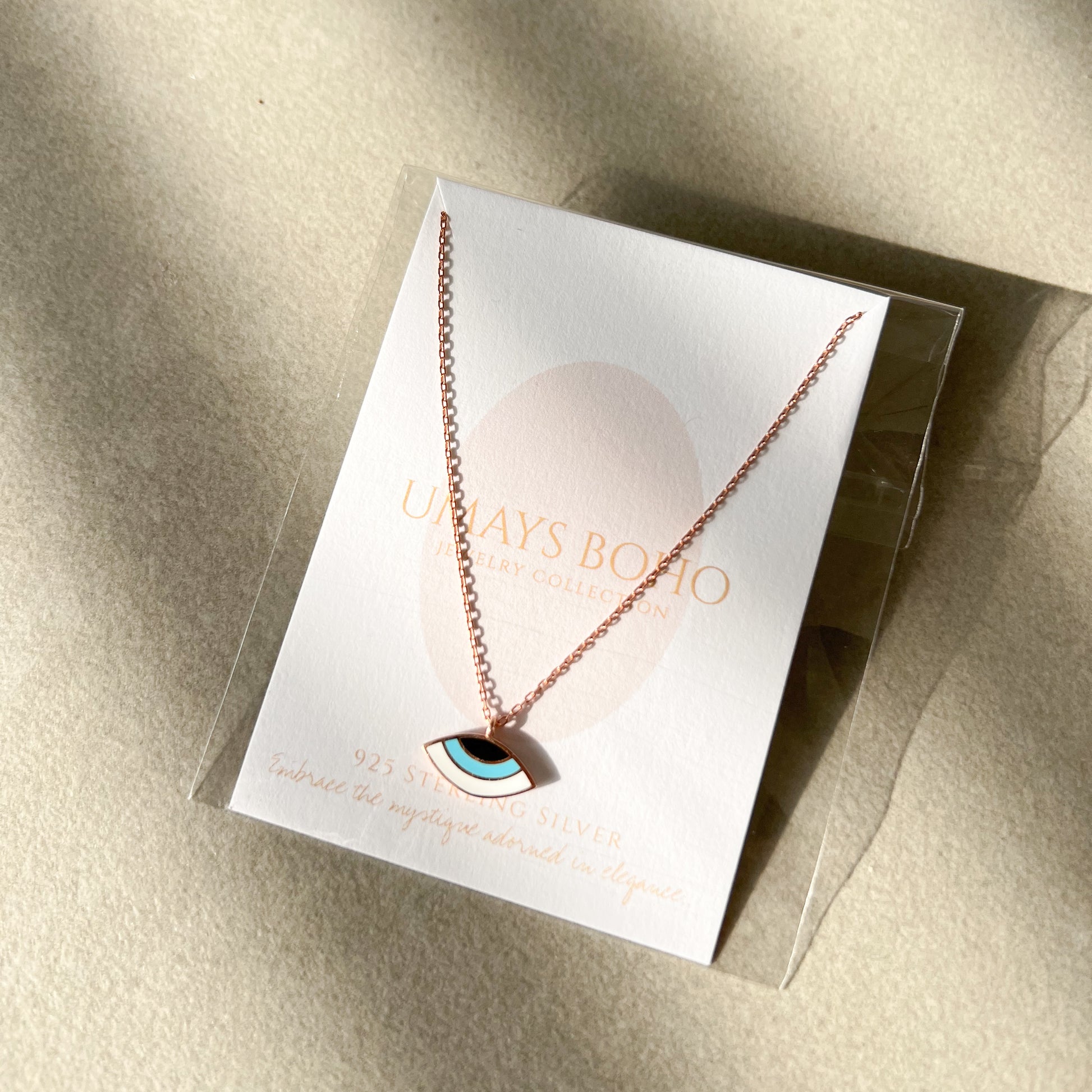 ♥️This 925-sterling silver necklace, rose gold plated for a touch of shine, is perfect for those who love a minimalist style. With its evil eye pendant it is a unique and elegant piece that's sure to stand out. The chain size is adjustable, so it fits just right for anyone. Their minimalist nature complements nearly any outfit.