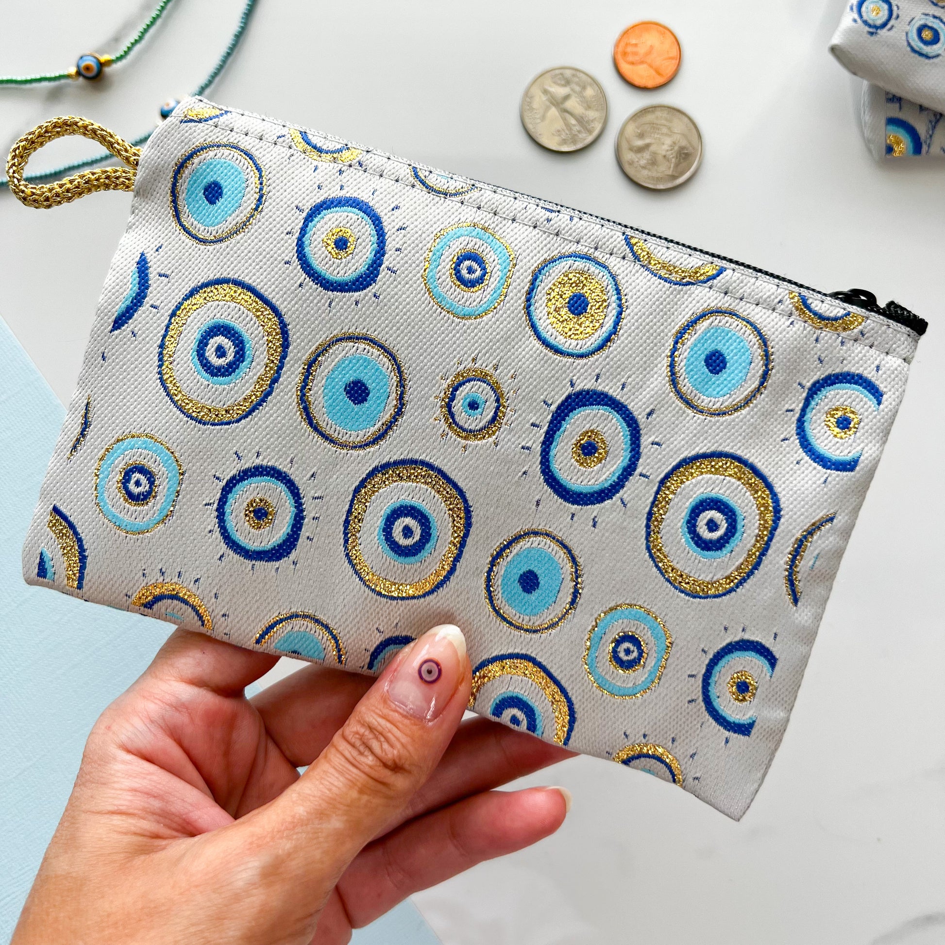 Cute Evil Eye Coin Purse, Handmade Fabric Zipper Pouch