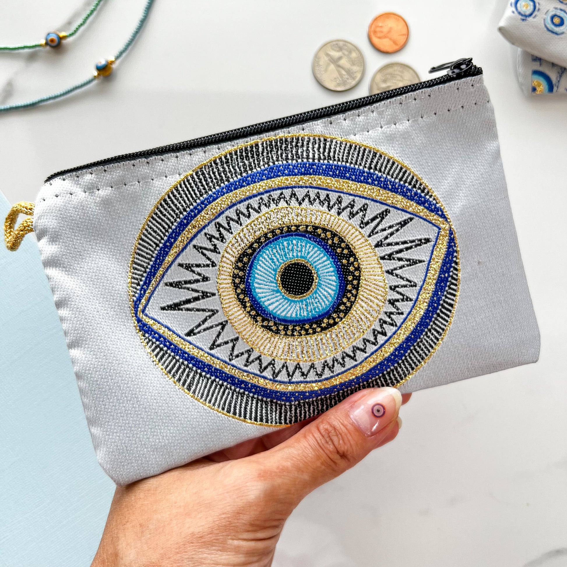Not only are these pouches functional and stylish, but they also serve as a protective charm against the evil eye. The evil eye is a symbol of good luck and protection in many cultures, making these pouches a meaningful gift that carries a positive message of protection and good fortune.