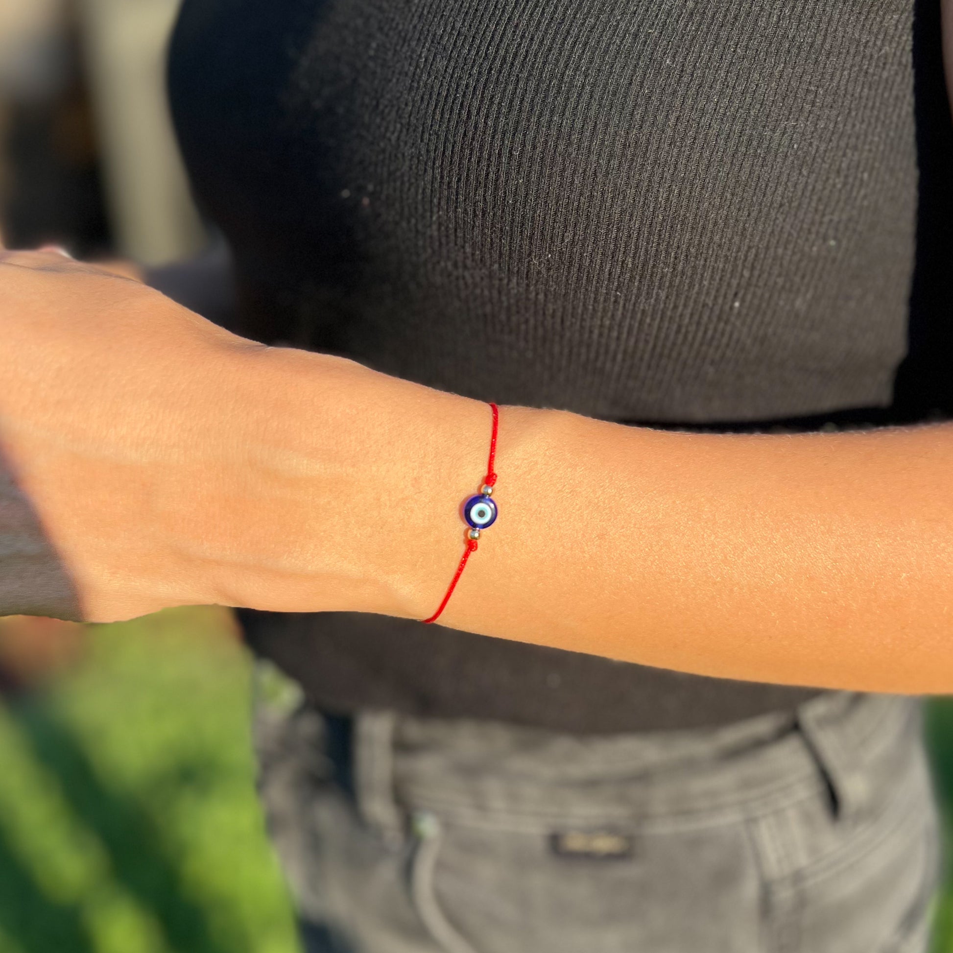 Evil Eye Cord Bracelet with Adjustable String, Red Cord Bracelet with Evil Eye