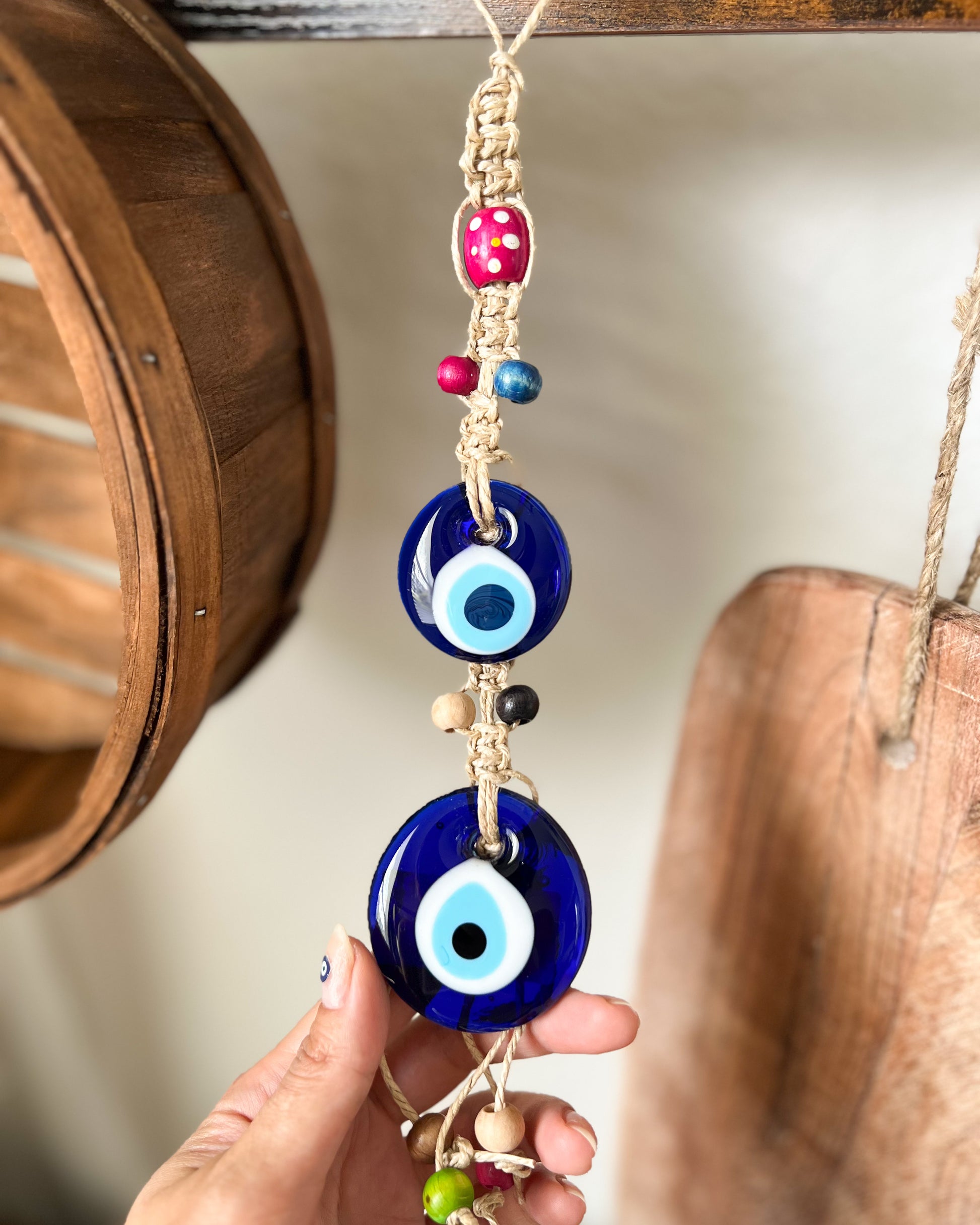 People love hanging these near their doors or in a spot that catches some sunlight—it just adds a little extra character to any room. Plus, there’s something comforting about the evil eye design; it’s believed to bring good energy and keep the bad vibes away. Whether you’re superstitious or just like the look, it’s a beautiful addition to any space. Perfect for yourself or as a thoughtful gift! Bring positive energy and a touch of Turkish culture into your home with this handmade Evil Eye Wall Hanging.