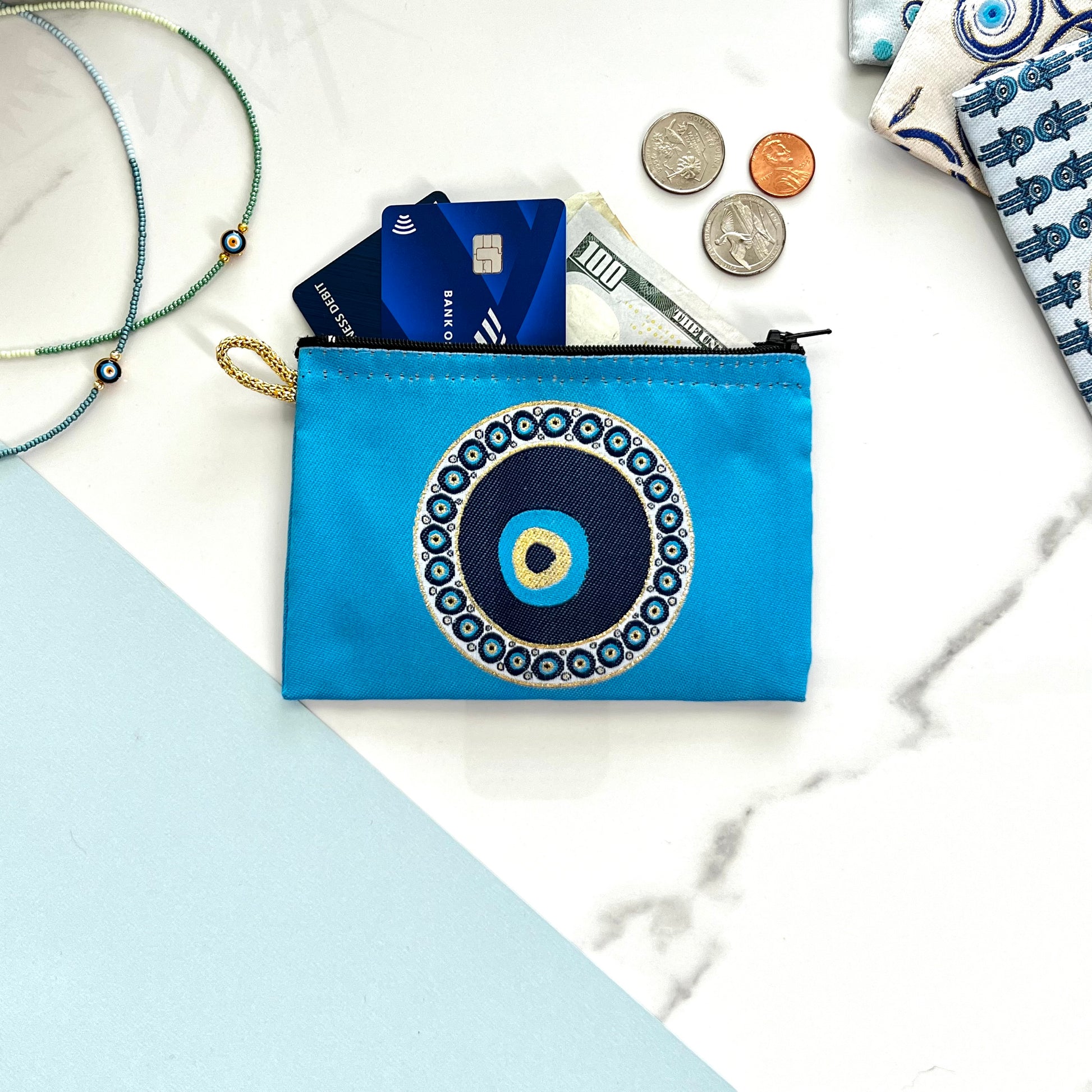 Boho Coin Purse, Handmade Fabric Pouch, Evil Eye