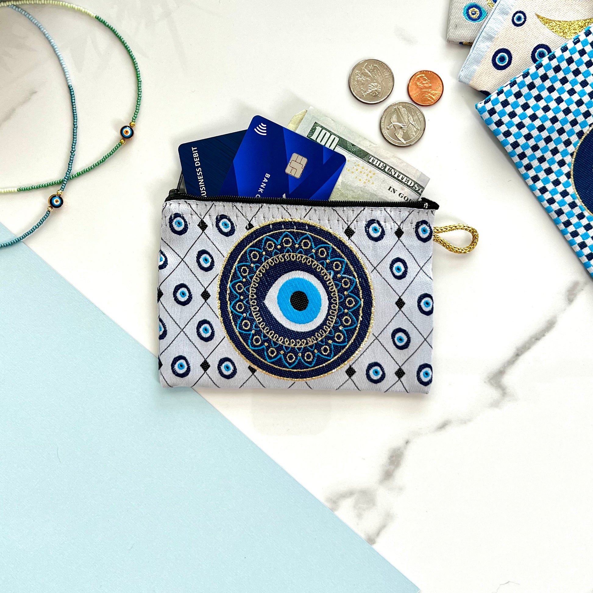Handmade Zipper Pouch, Fabric Coin Purse, Evil Eye Purse