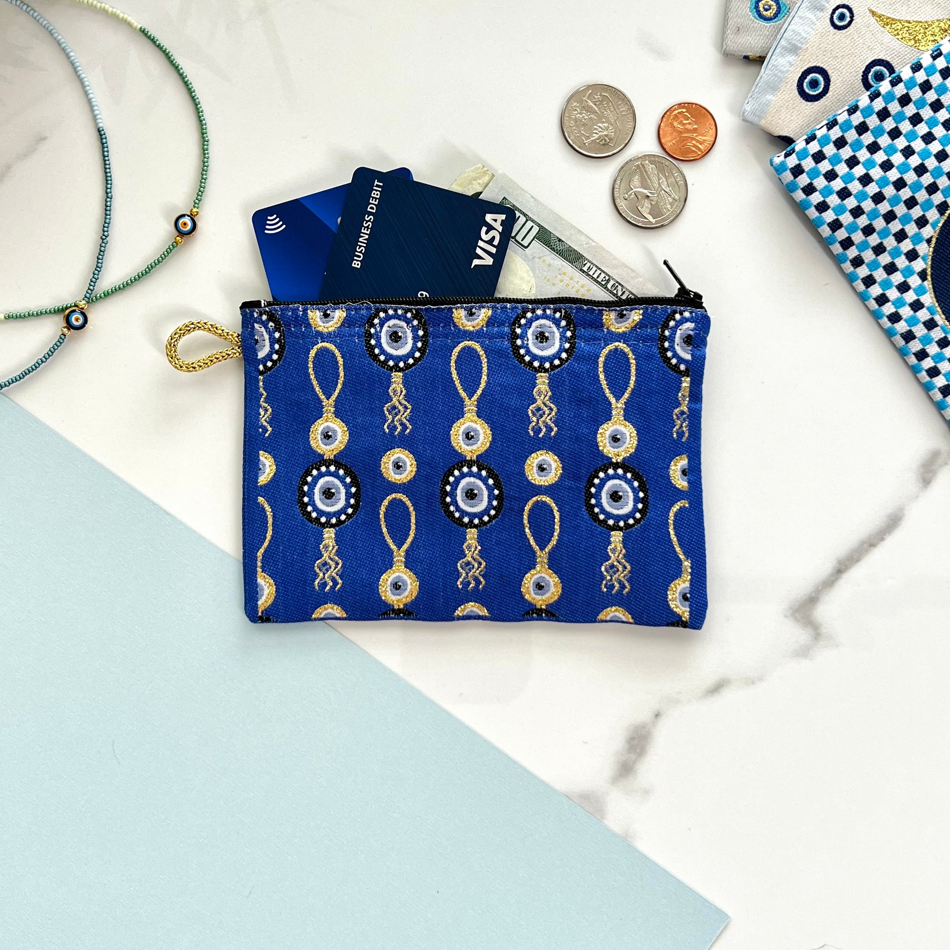 Boho Coin Purse, Fabric Zipper Pouch, Evil Eye Protection