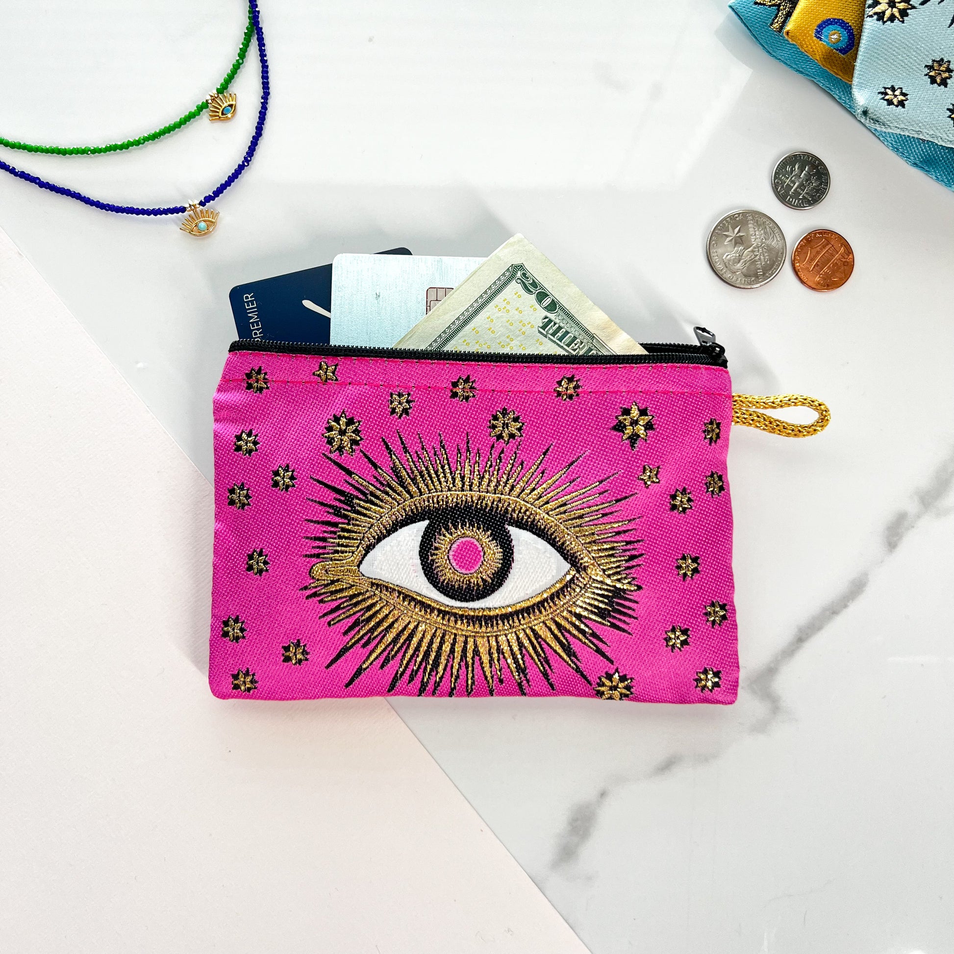 Pink Coin Purse, Evil Eye Pouch, Handmade Coin Purse
