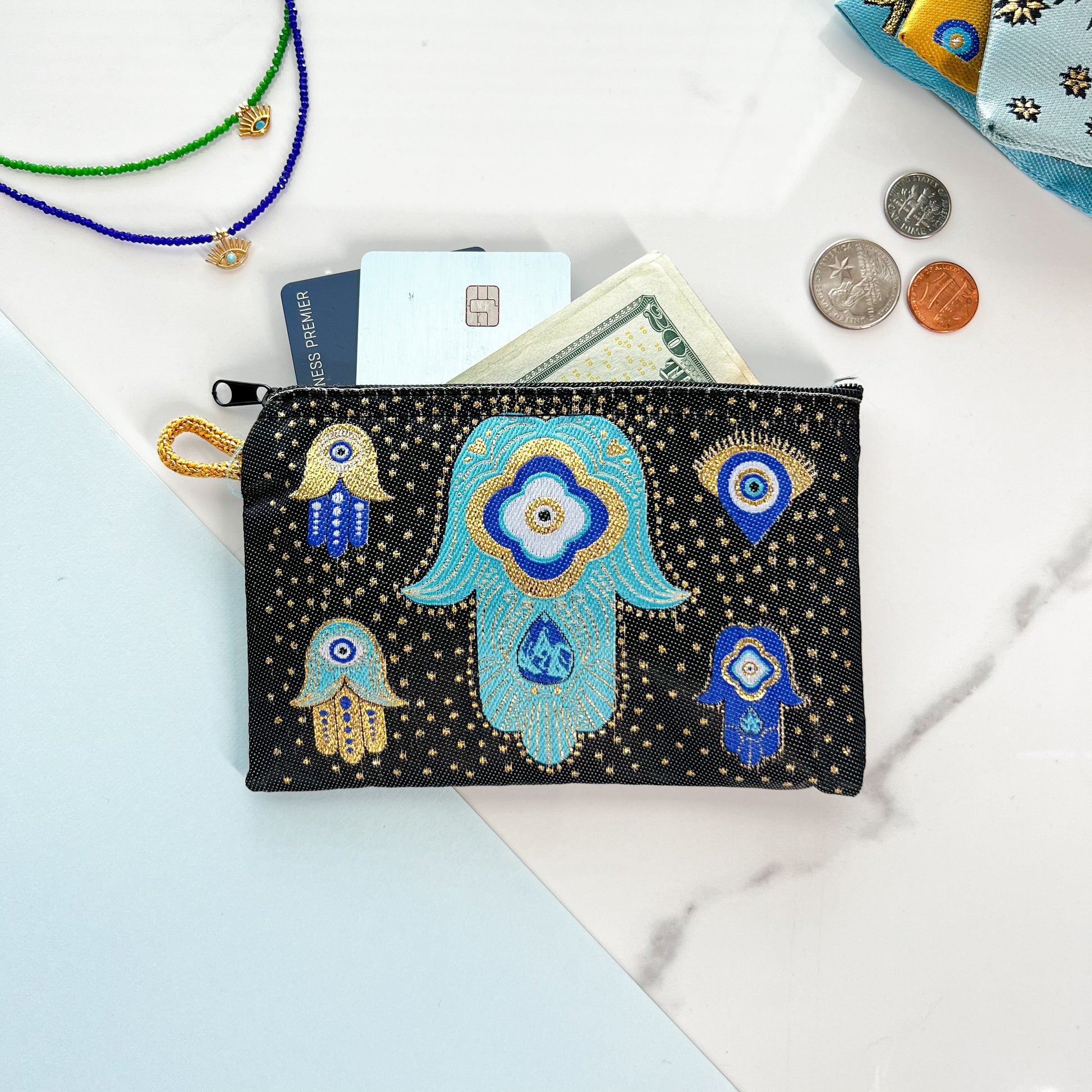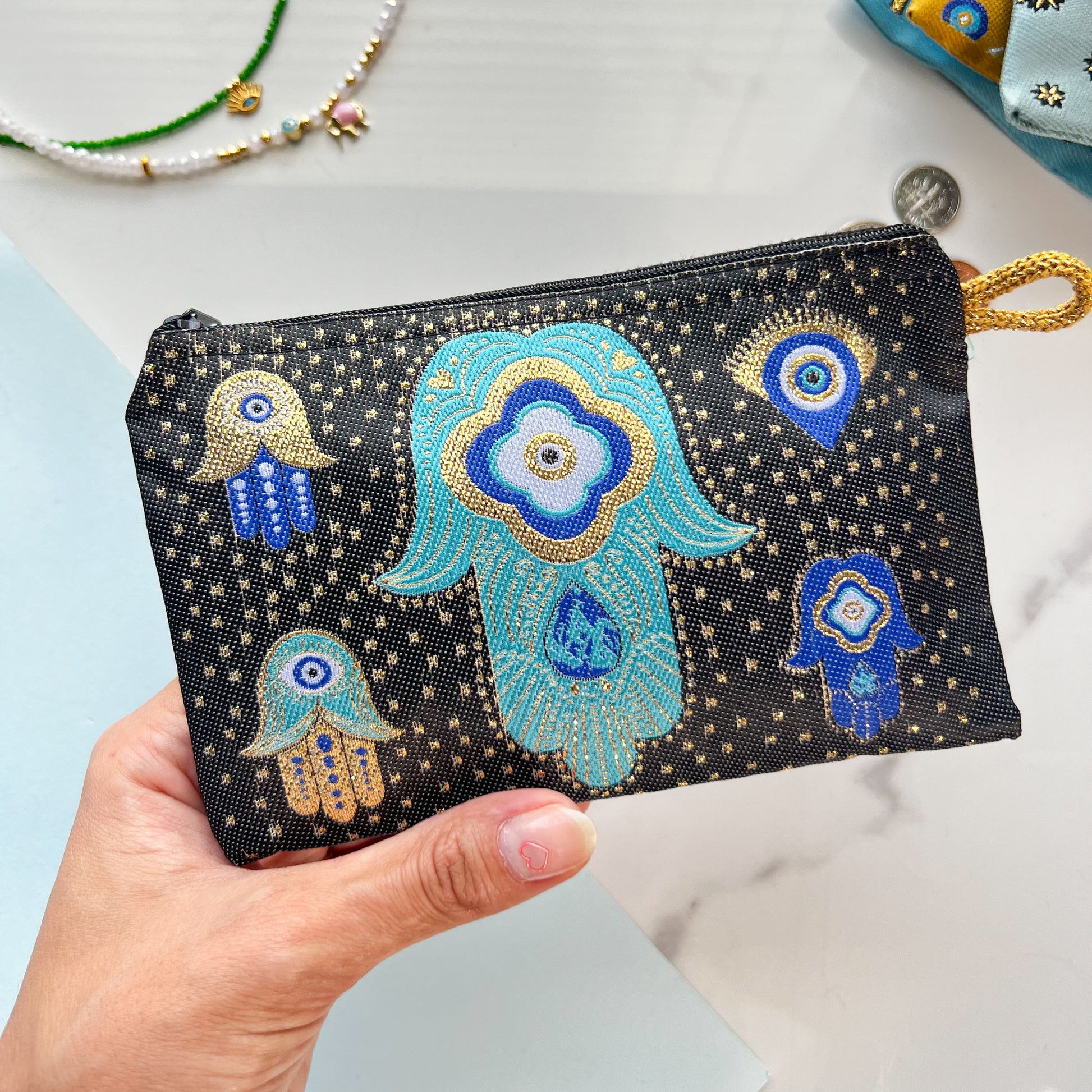 Hamsa Hand Coin Purse, Handmade Fabric Pouch, Zipper Pouch