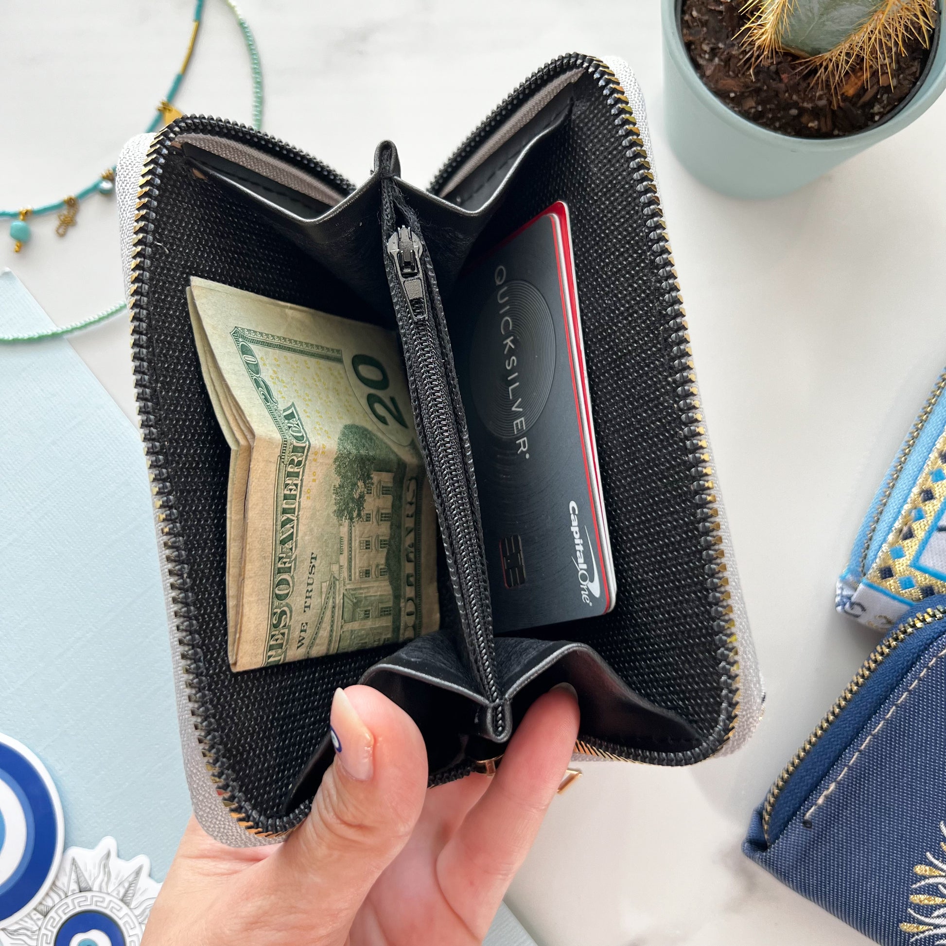 Our evil eye wallet features one central zipper pocket, making it easy to access your belongings on the go. With dimensions of 5 inches by 3 inches (13 cm x 8 cm), these wallets are small enough to carry anywhere yet versatile enough to meet your everyday needs.