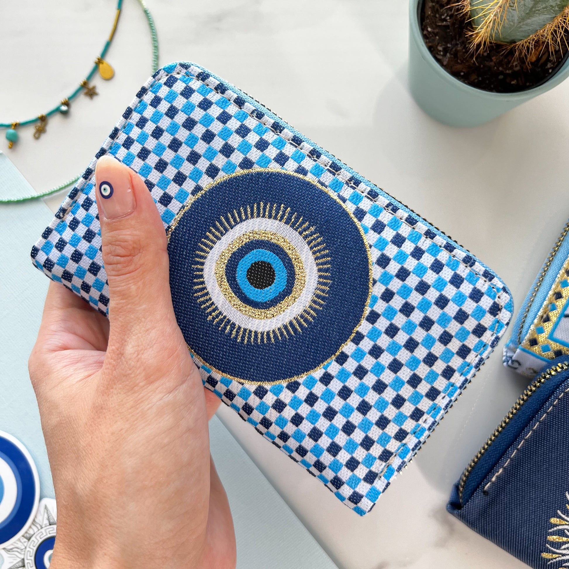 Ideal for use as small bags, purses, or for quick trips to the market, these compact wallets are designed to fit comfortably in your hand while still holding all your essentials. Although they don't feature designated credit card slots, there's plenty of space to store cards, coins, and keys. Cute and practical, these wallets make a thoughtful gift for anyone who appreciates the protective charm of the evil eye.