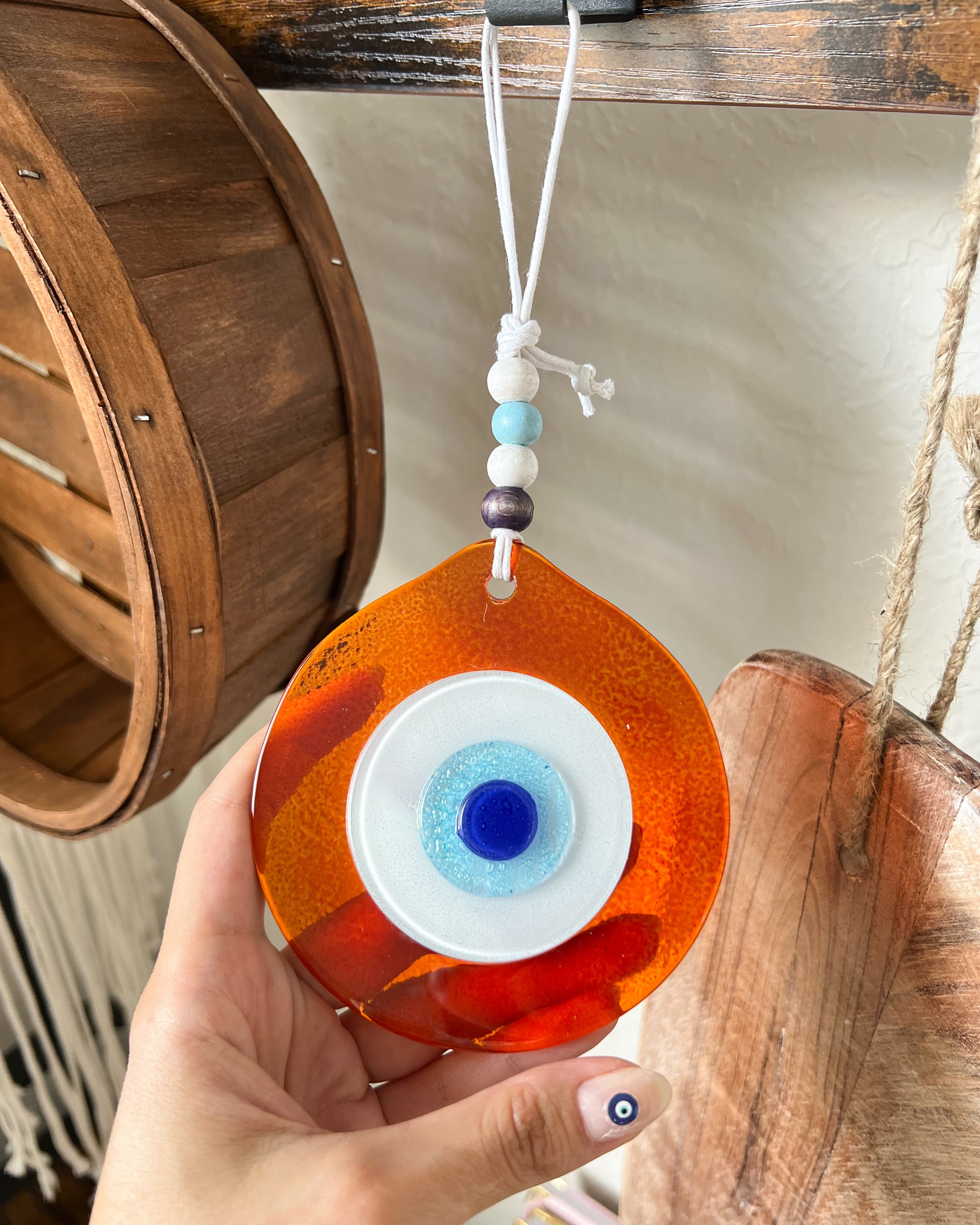 People love hanging these near their doors or in a spot that catches some sunlight—it just adds a little extra character to any room. Plus, there’s something comforting about the evil eye design; it’s believed to bring good energy and keep the bad vibes away. Whether you’re superstitious or just like the look, it’s a beautiful addition to any space. Perfect for yourself or as a thoughtful gift! Bring positive energy and a touch of Turkish culture into your home with this handmade Evil Eye Wall Hanging.