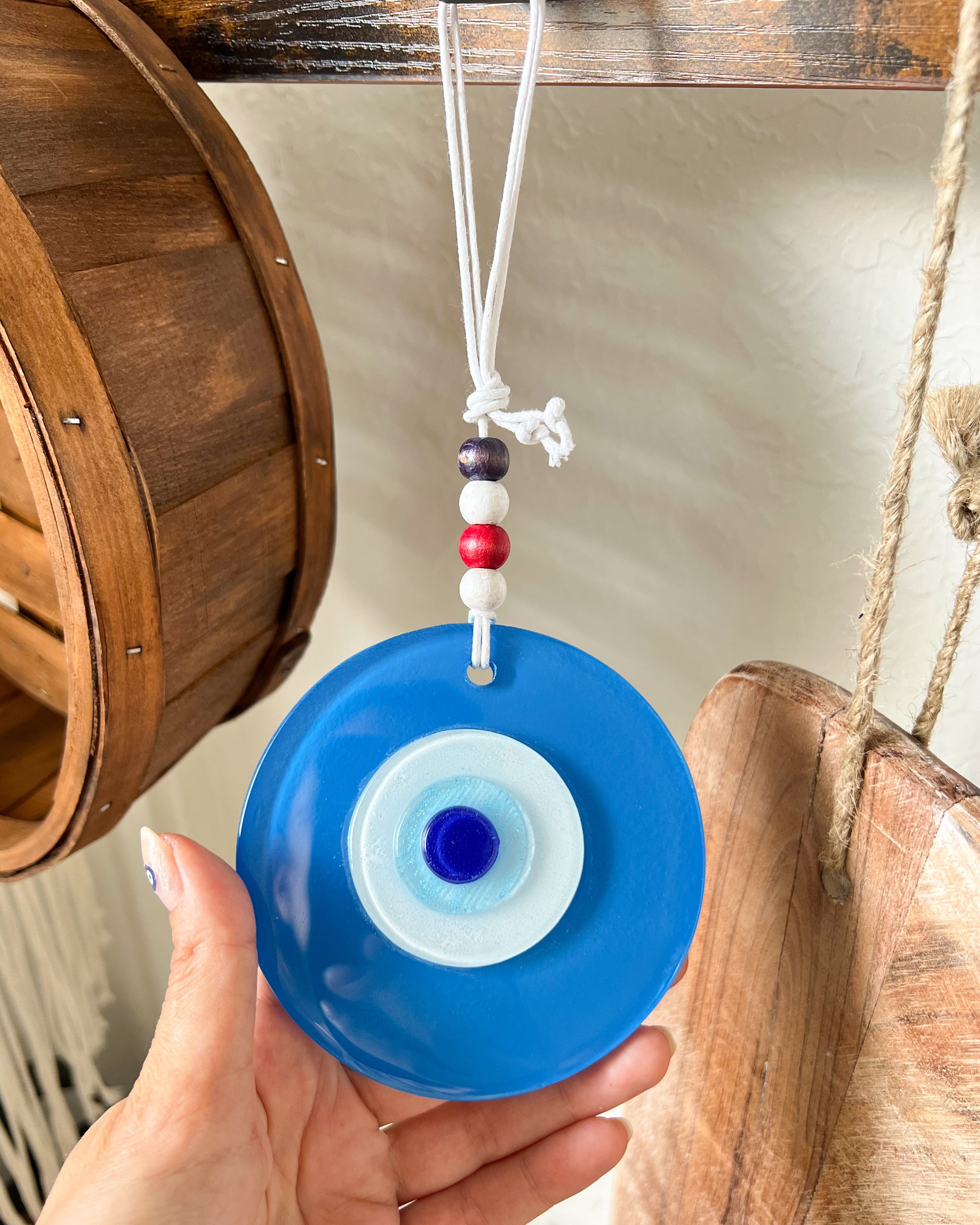 People love hanging these near their doors or in a spot that catches some sunlight—it just adds a little extra character to any room. Plus, there’s something comforting about the evil eye design; it’s believed to bring good energy and keep the bad vibes away. Whether you’re superstitious or just like the look, it’s a beautiful addition to any space. Perfect for yourself or as a thoughtful gift! Bring positive energy and a touch of Turkish culture into your home with this handmade Evil Eye Wall Hanging.
