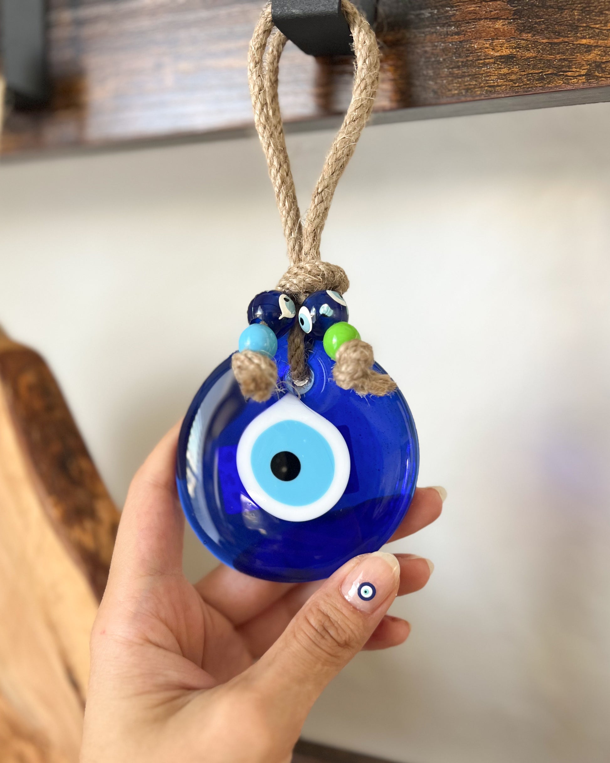 People love hanging these near their doors or in a spot that catches some sunlight—it just adds a little extra character to any room. Plus, there’s something comforting about the evil eye design; it’s believed to bring good energy and keep the bad vibes away. Whether you’re superstitious or just like the look, it’s a beautiful addition to any space. Perfect for yourself or as a thoughtful gift! Bring positive energy and a touch of Turkish culture into your home with this handmade Evil Eye Wall Hanging.