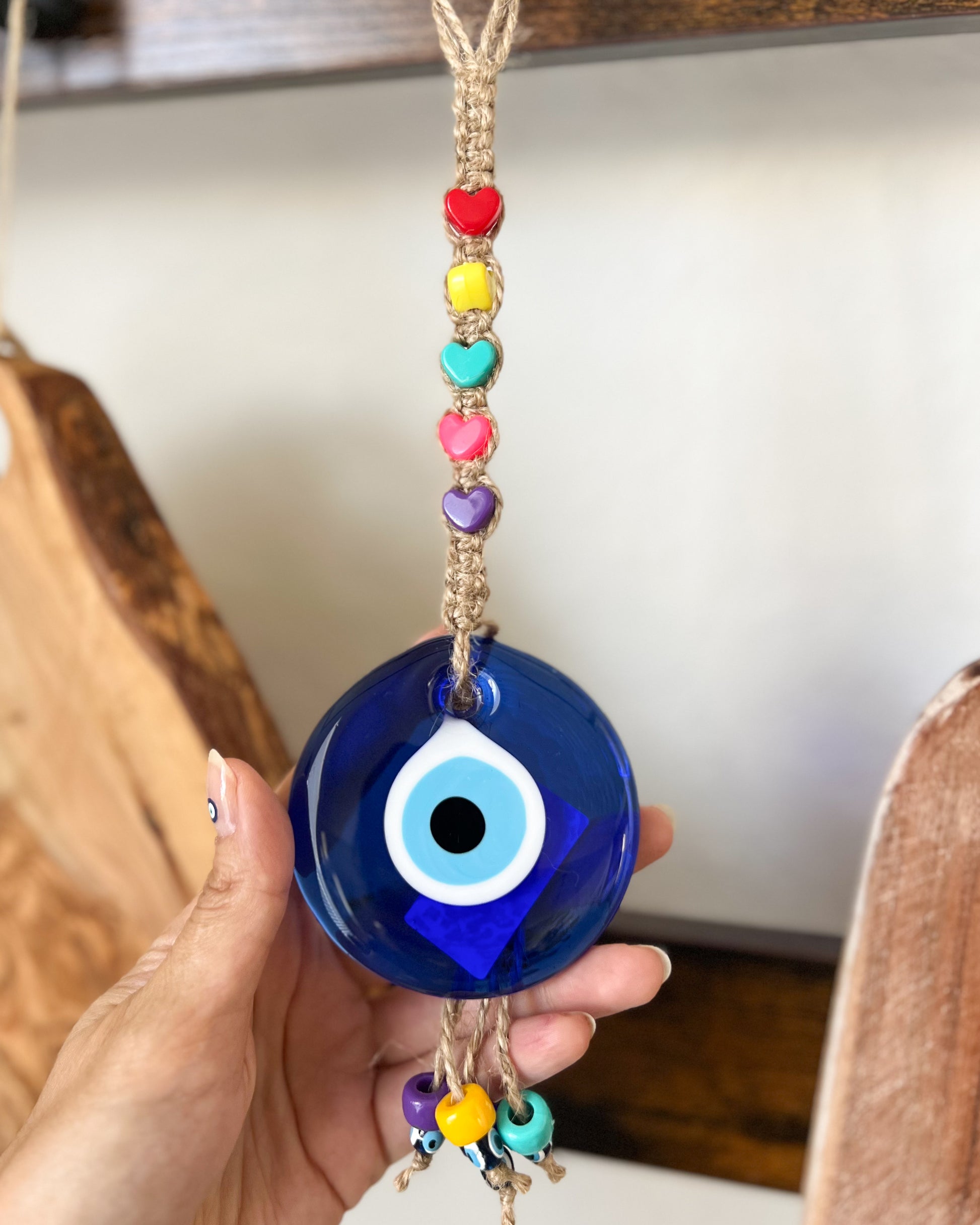 People love hanging these near their doors or in a spot that catches some sunlight—it just adds a little extra character to any room. Plus, there’s something comforting about the evil eye design; it’s believed to bring good energy and keep the bad vibes away. Whether you’re superstitious or just like the look, it’s a beautiful addition to any space. Perfect for yourself or as a thoughtful gift! Bring positive energy and a touch of Turkish culture into your home with this handmade Evil Eye Wall Hanging.