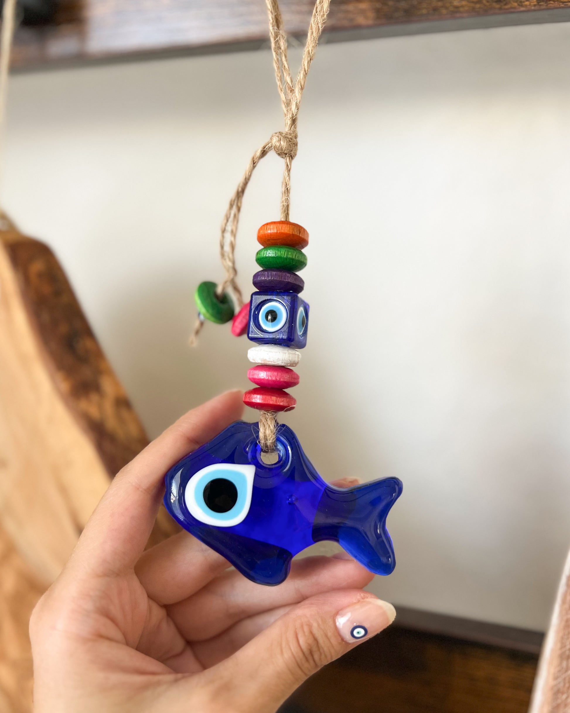 Fish Evil Eye Wall Hanging, Glass Evil Eye Wall Decor