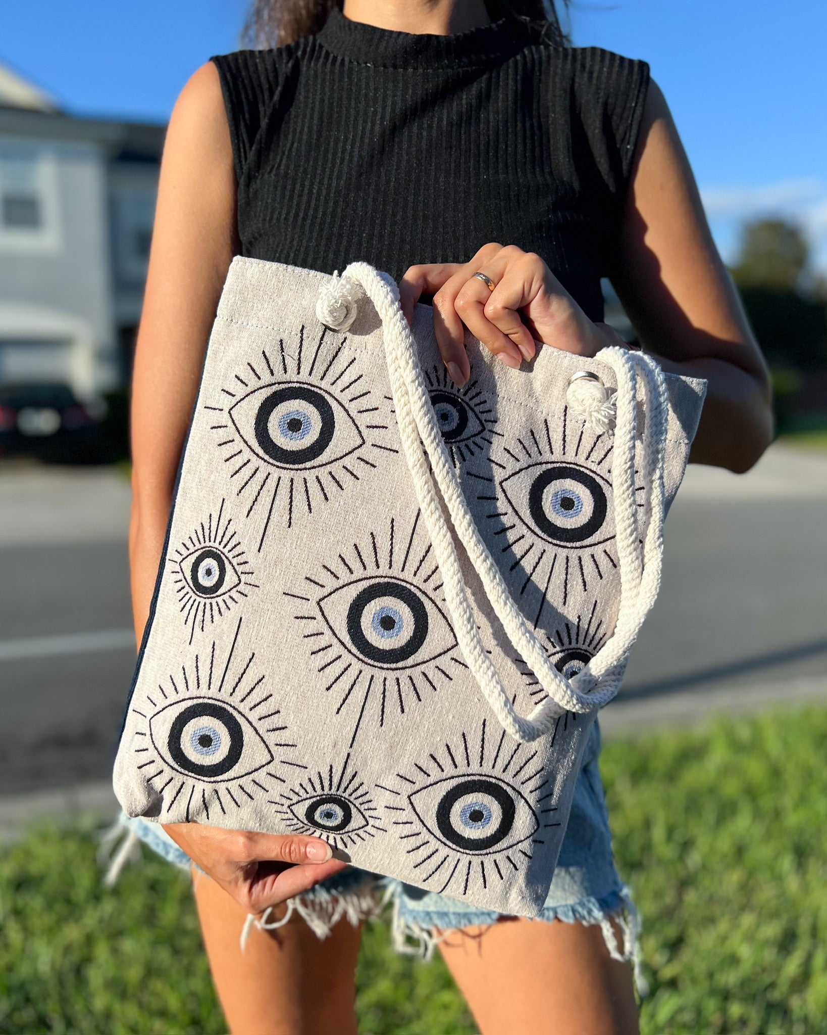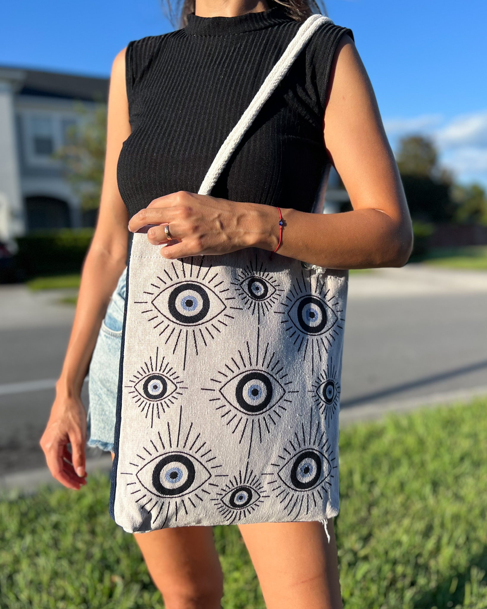 Evil Eye Tote Bag, Bohemian Style Shoulder Bag
