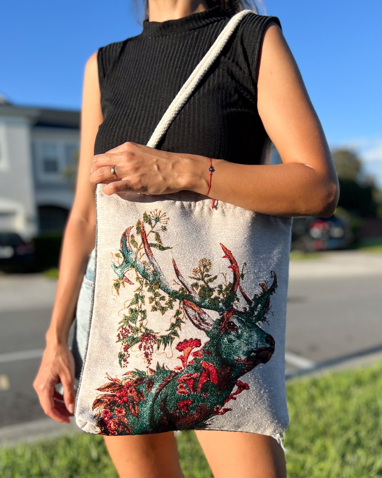 Reindeer Design Shoulder Bag, Tote Bag for Women