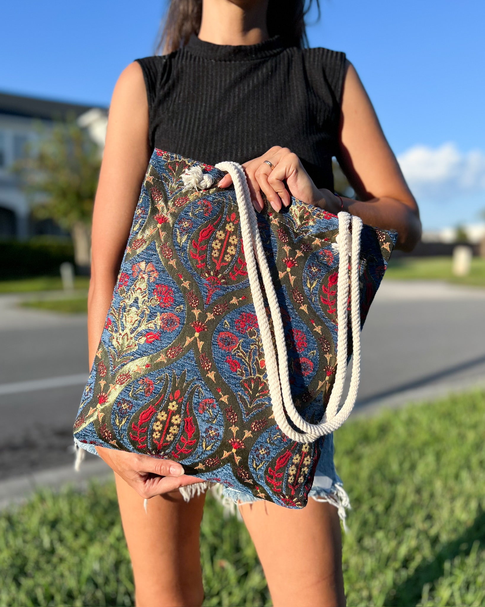 Rug Design Shoulder Bag, Boho Tote Bag for Women