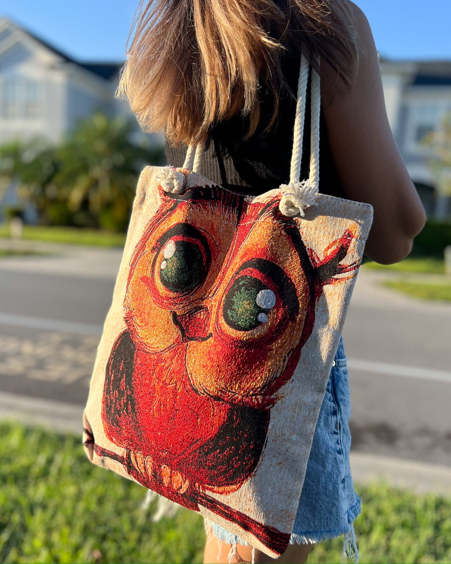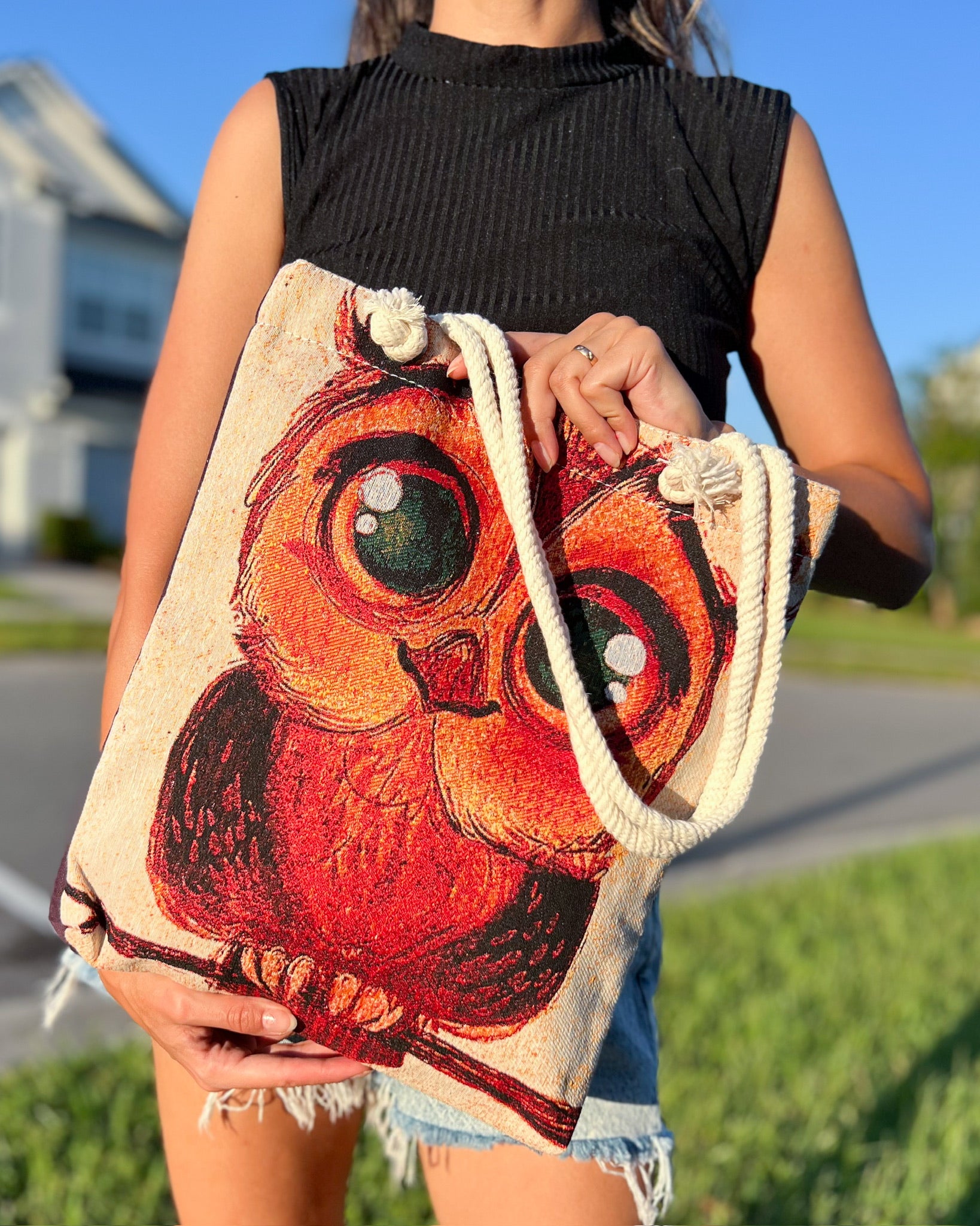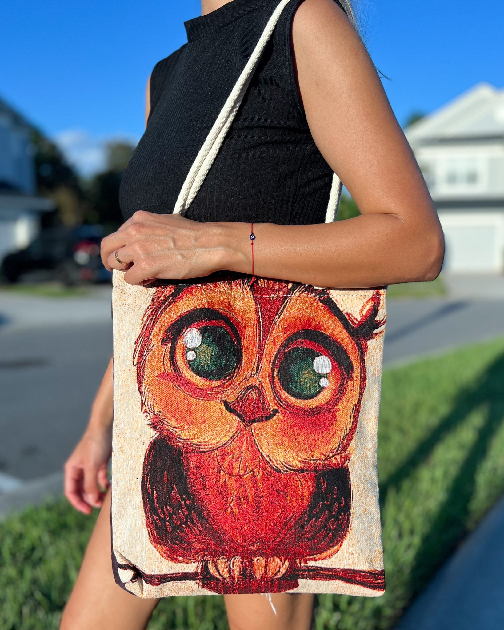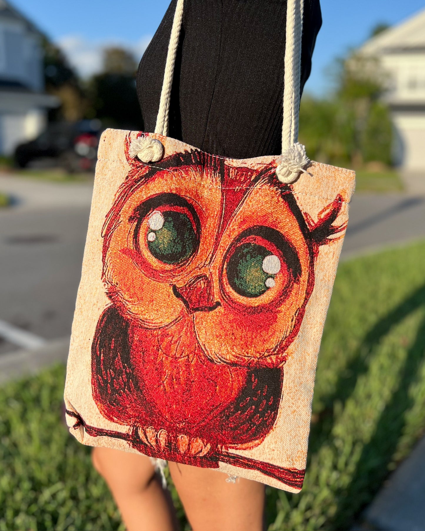 Owl Design Tote Bag, Gift for Animal Lovers, Cute Tote Bag