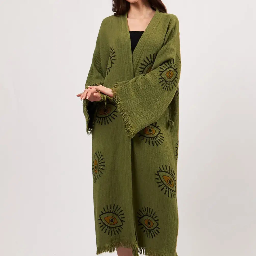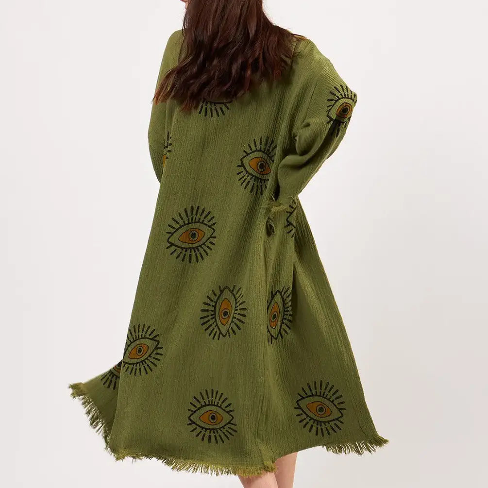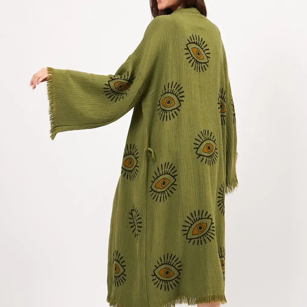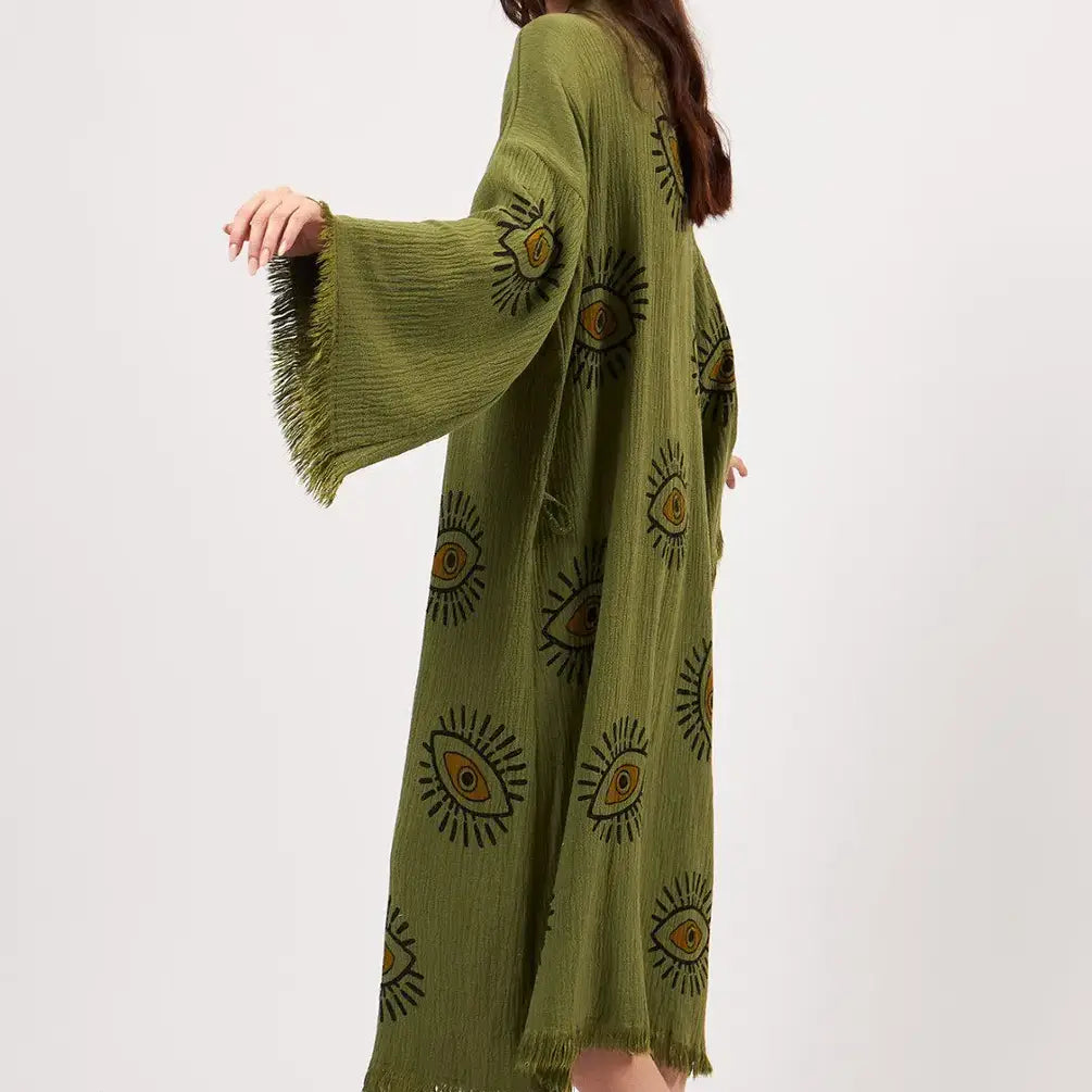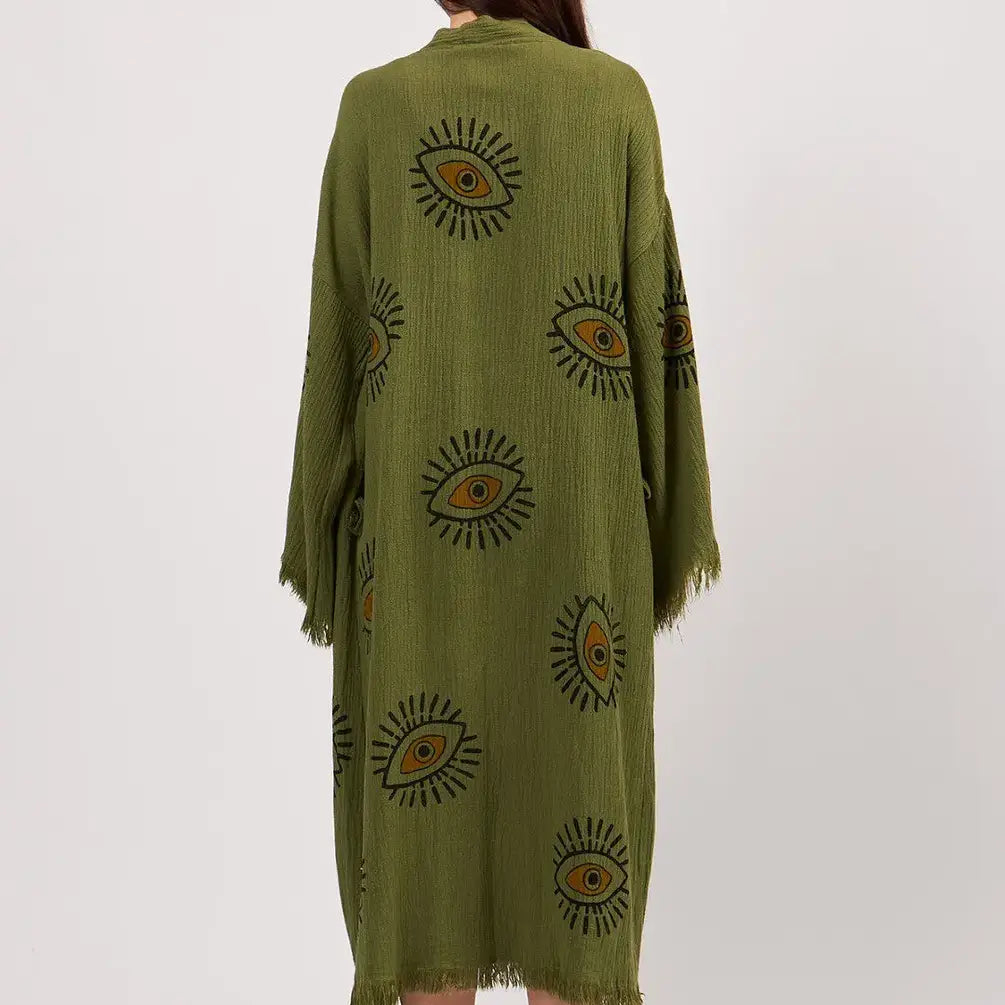 Green Evil Eye Kimono, Cotton Kaftan Kimono, Evil Eye Robes