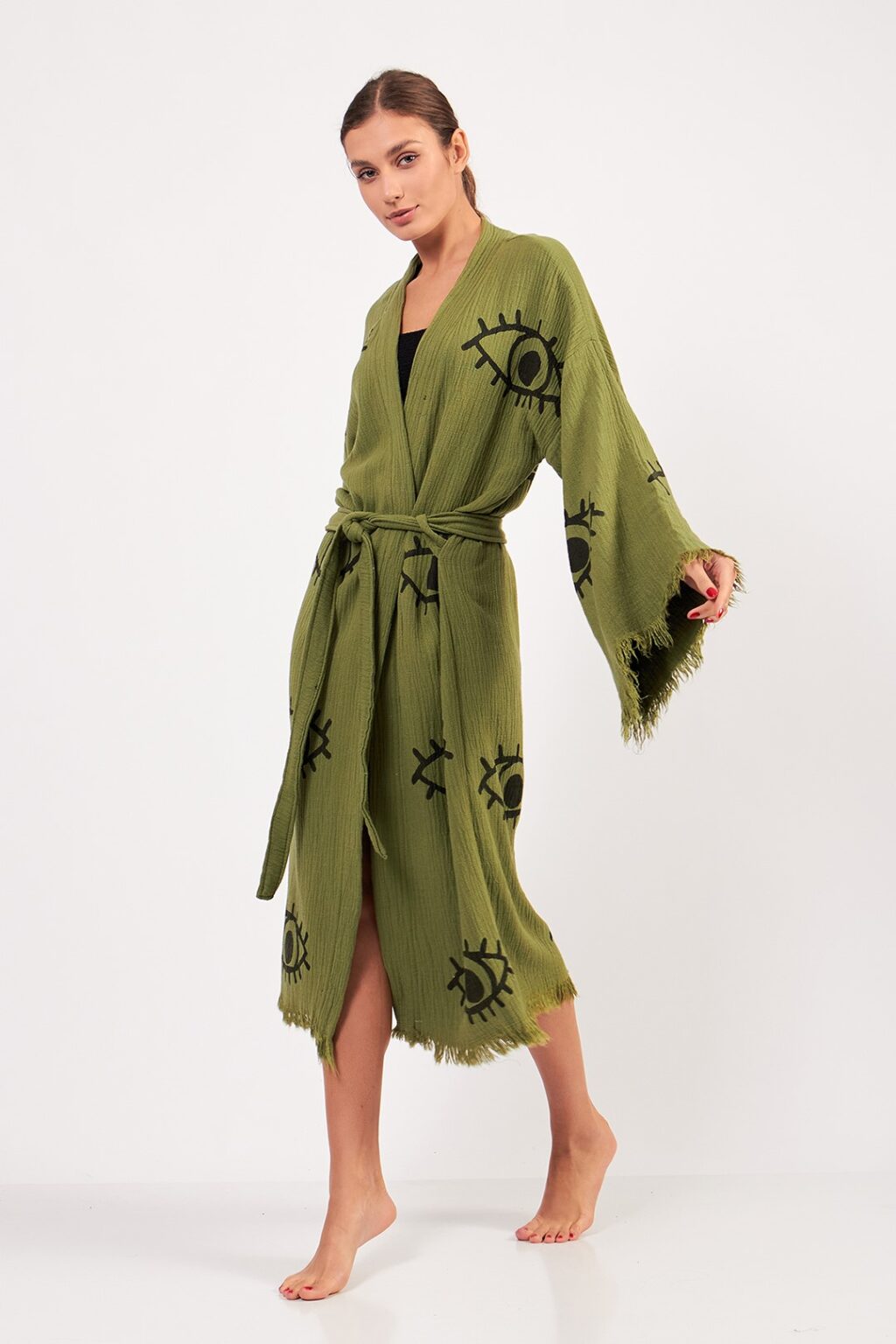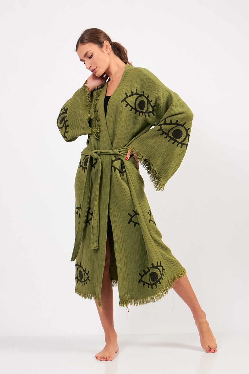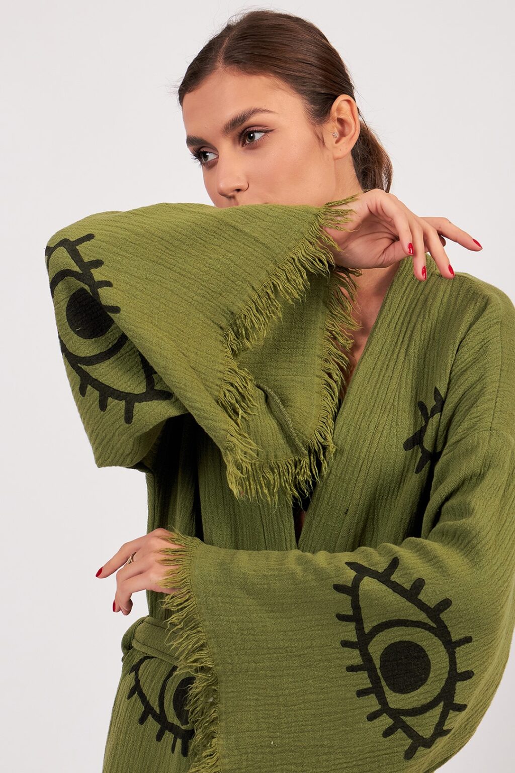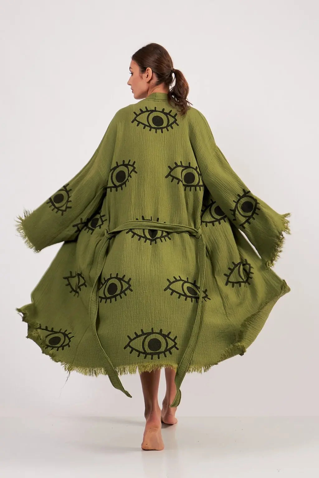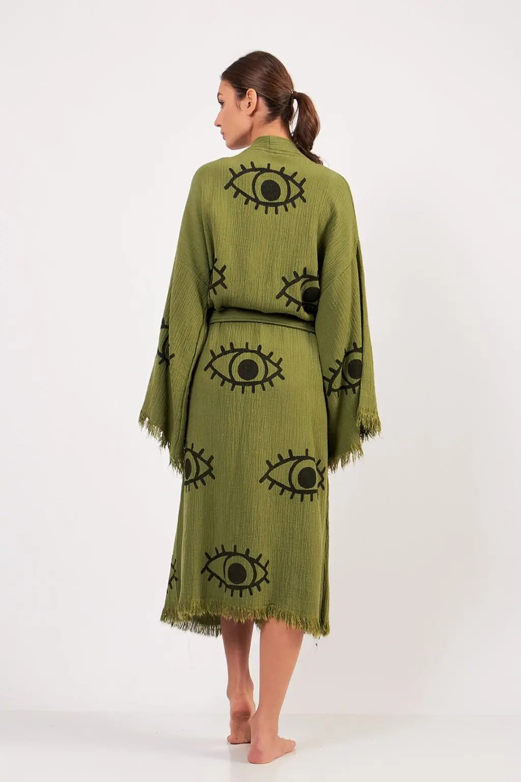 Green Evil Eye Kimono, Luxury Robe, Turkish Cotton Robe