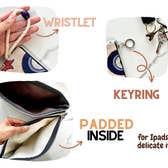 Our stylish and functional slim clutch for women, featuring captivating evil eye designs and thoughtful details. This versatile accessory is designed to complement your outfit while providing convenient storage for your essentials and even your iPad! With a sleek and slim profile, this clutch effortlessly fits into your hand or can be worn with the included wristlet for a hands-free option. The padded interior offers secure storage for your iPad and your cell phone, ensuring it stays protected from scratches and bumps while on the go.