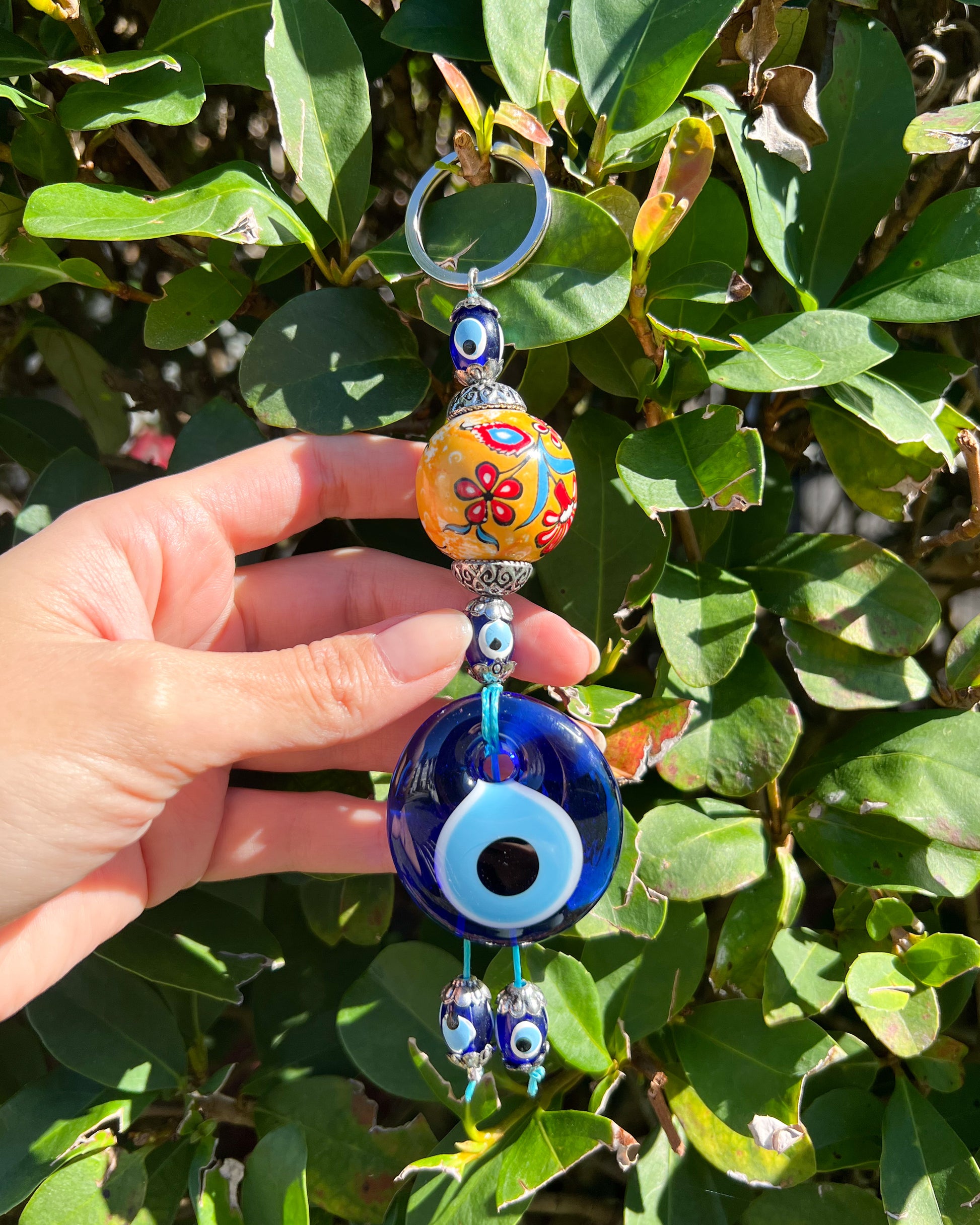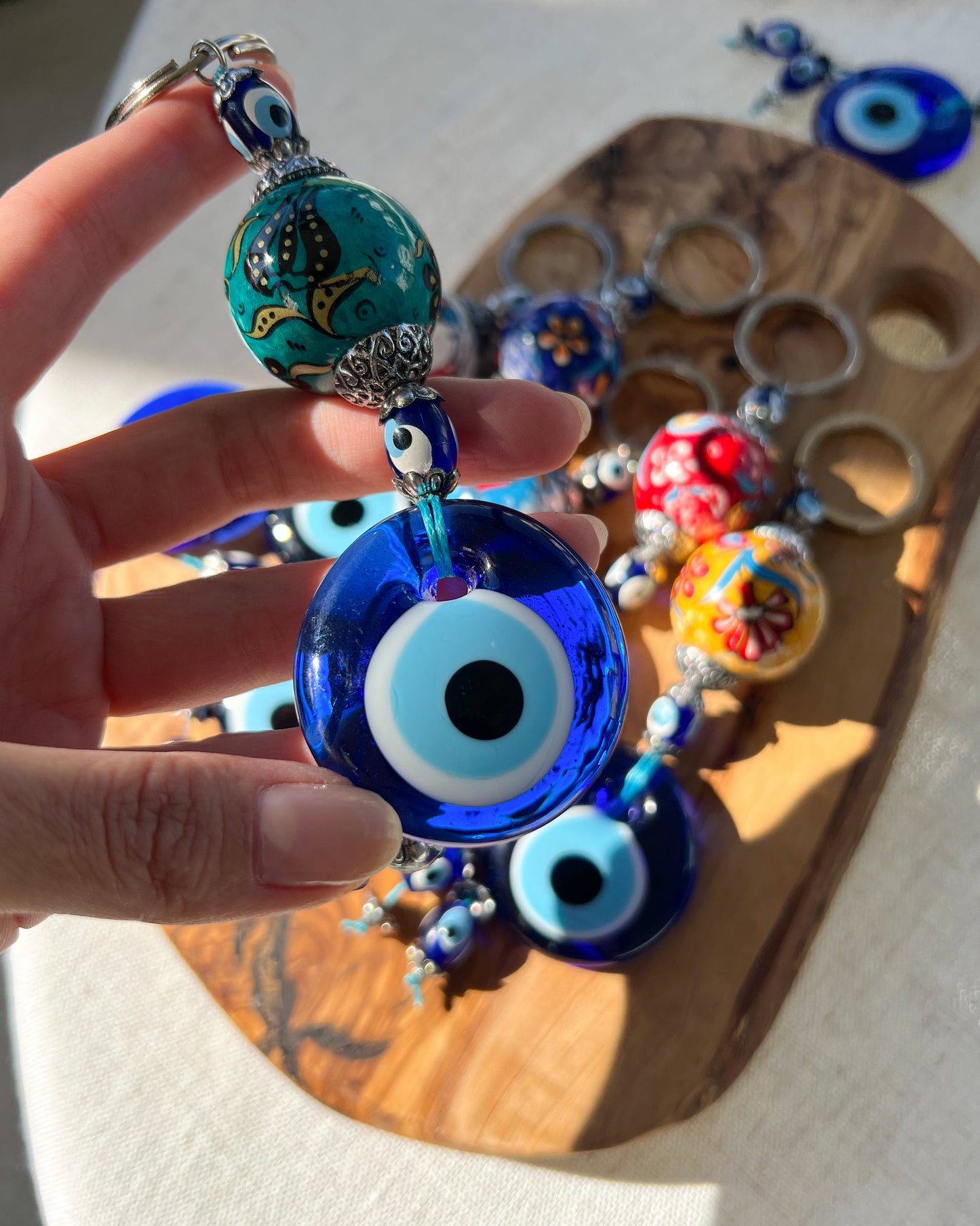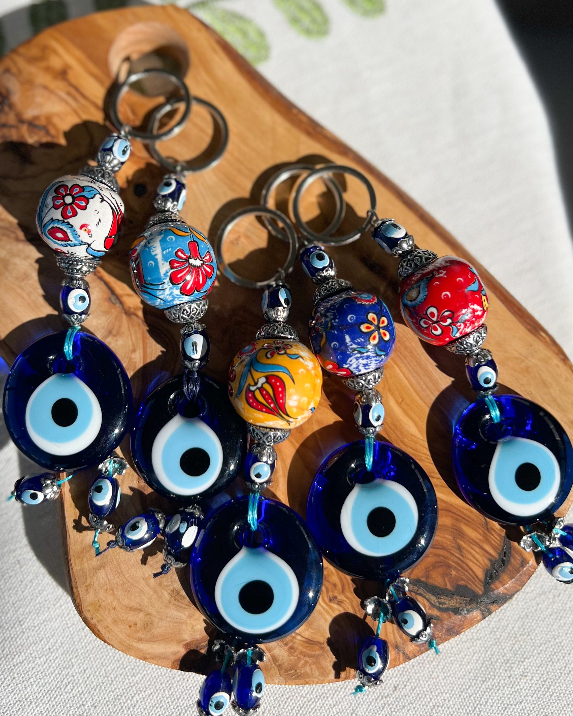 Evil Eye Keychain with Handpainted Ceramic Ball, Boho Keychain