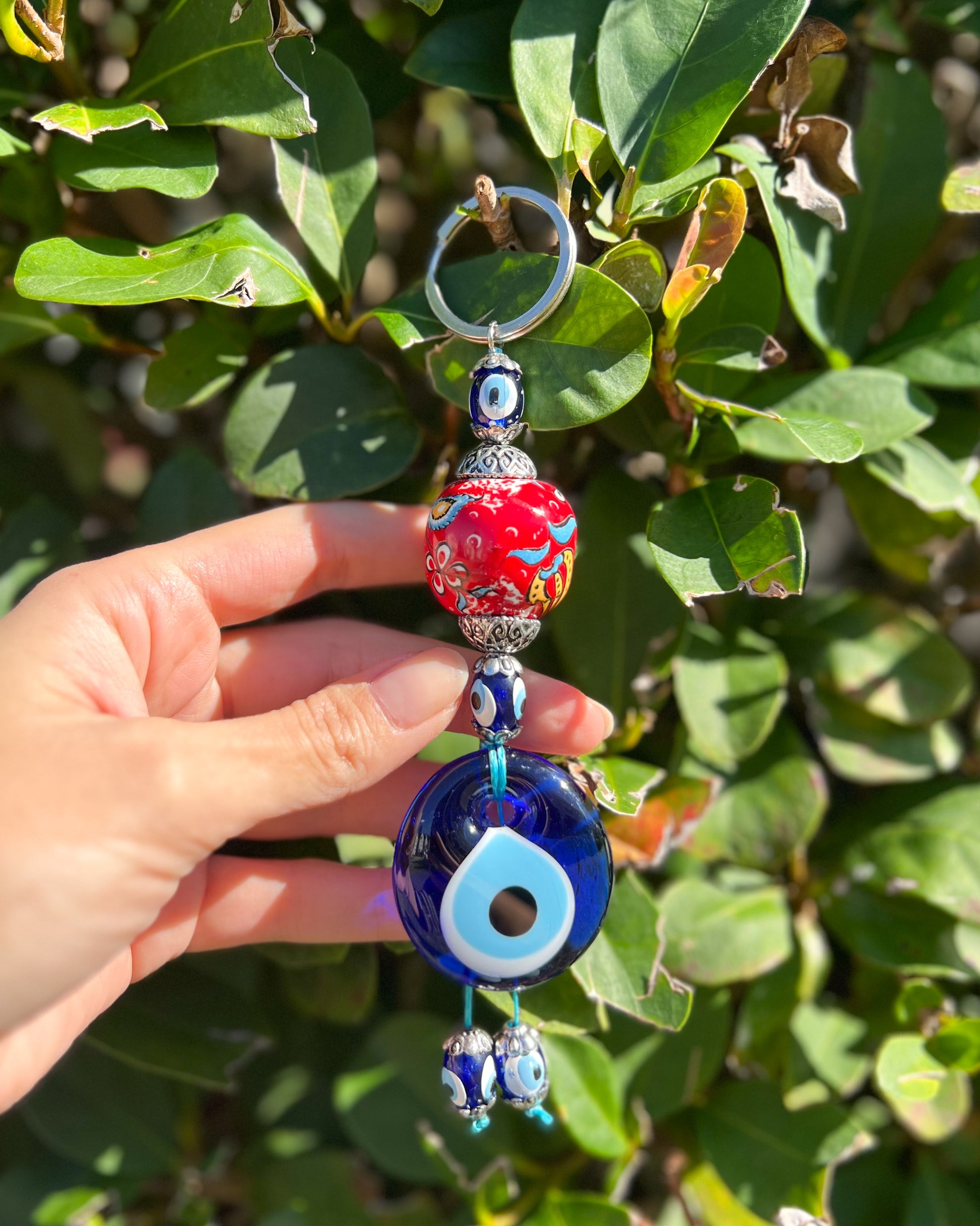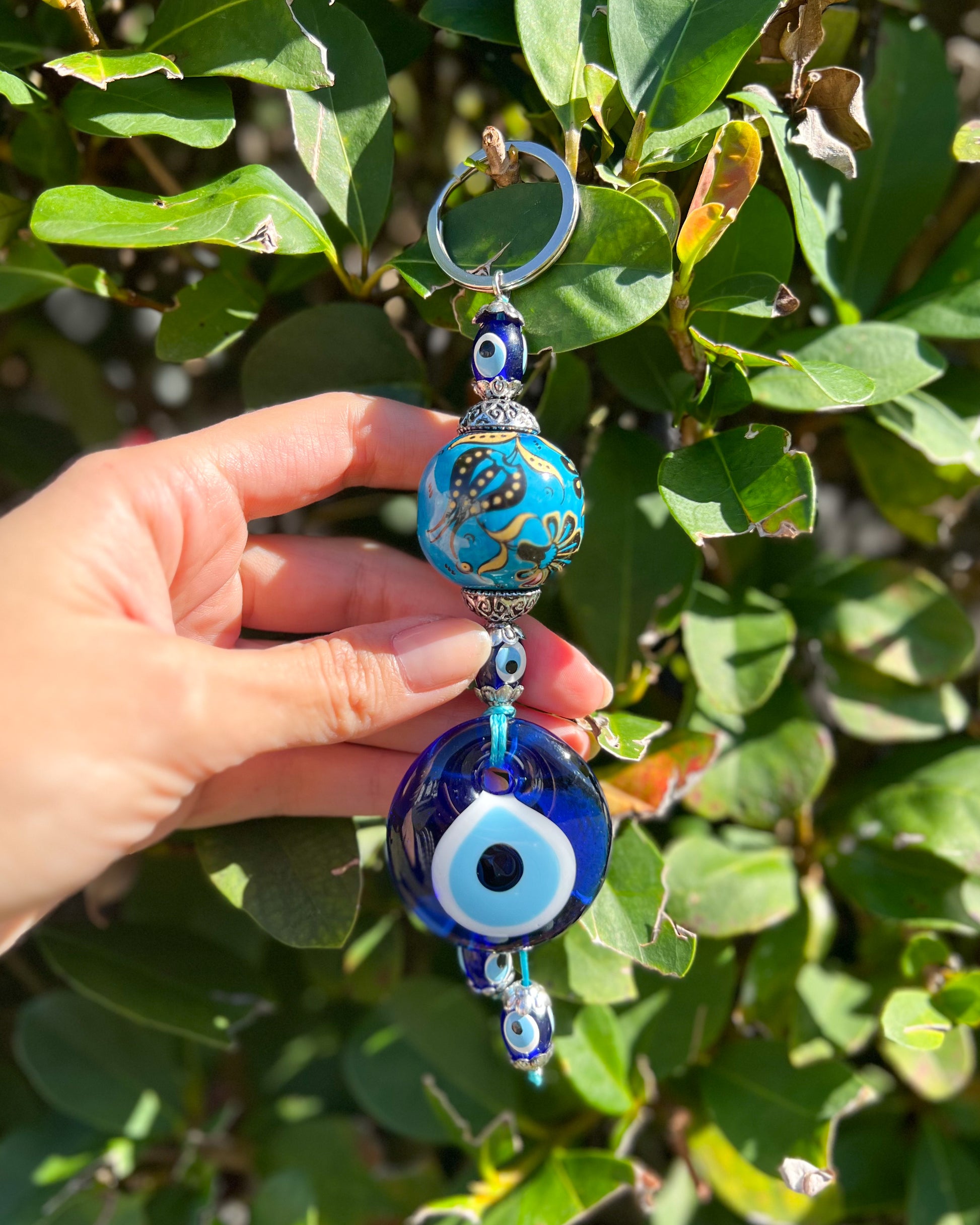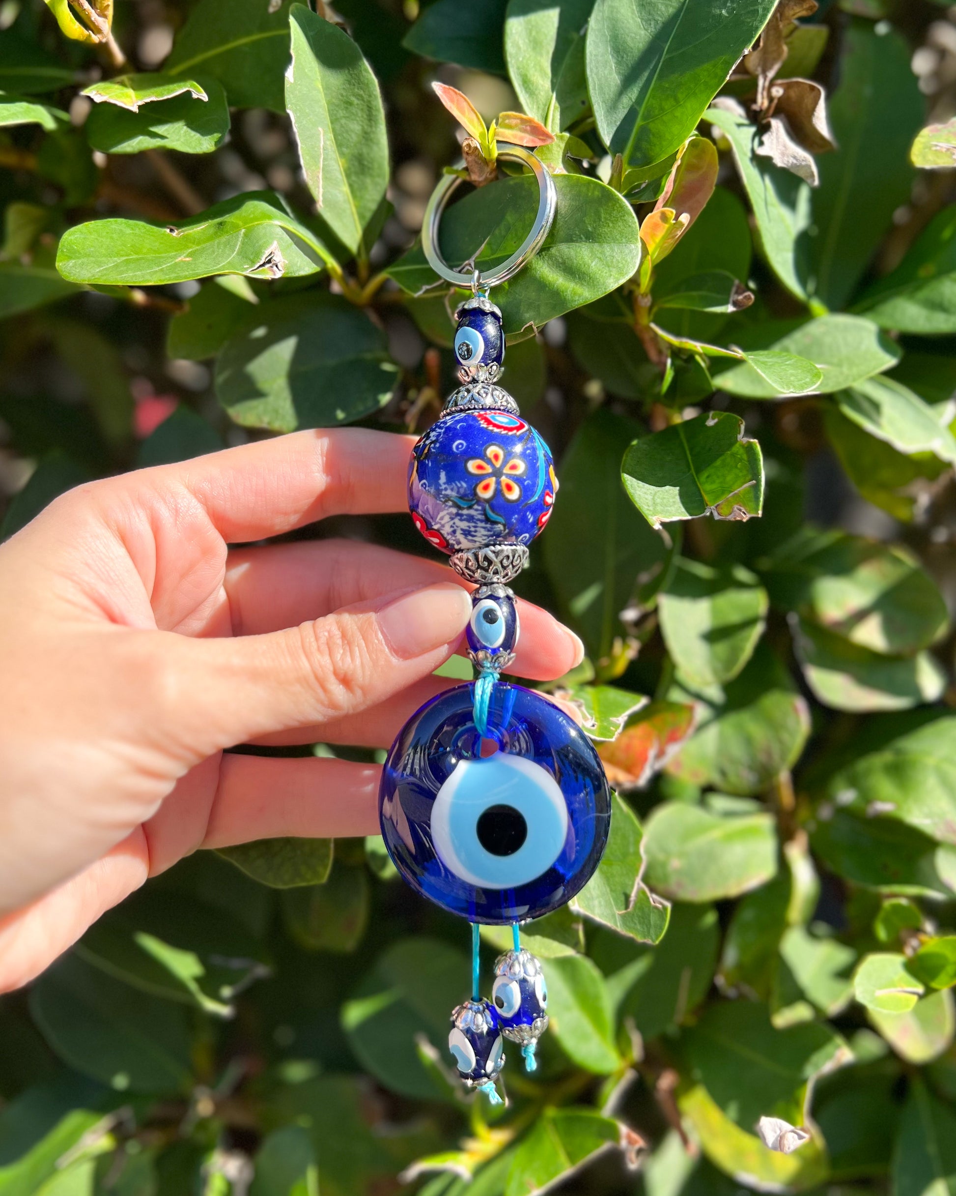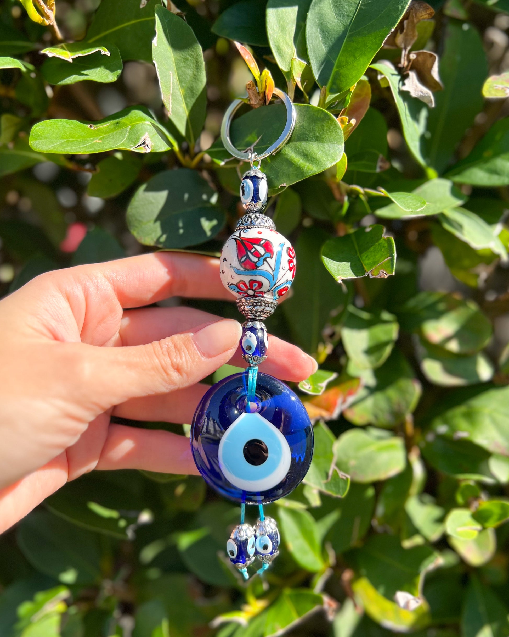 Evil Eye Keychain with Handpainted Ceramic Ball, Boho Keychain