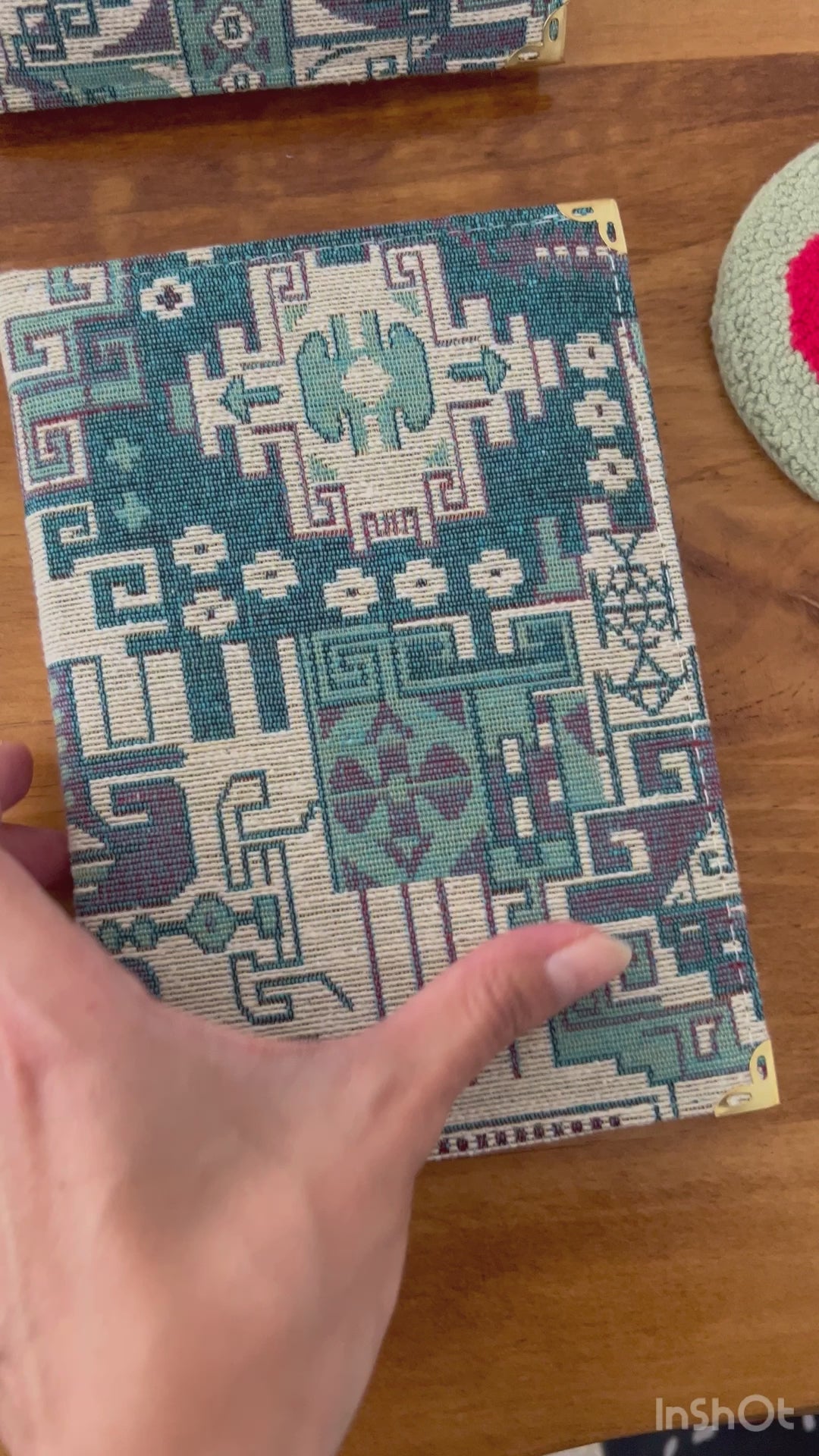 Our bohemian fabric notebooks are perfect for Diaries, Journals and a perfect companion for your work and meetings or school or even travels. Each boho notebook is filled with lined pages and has hardcover with Turkish carpet pattern designed brocade fabric on the top with a gold, glittery look and soft and luxurious touch.