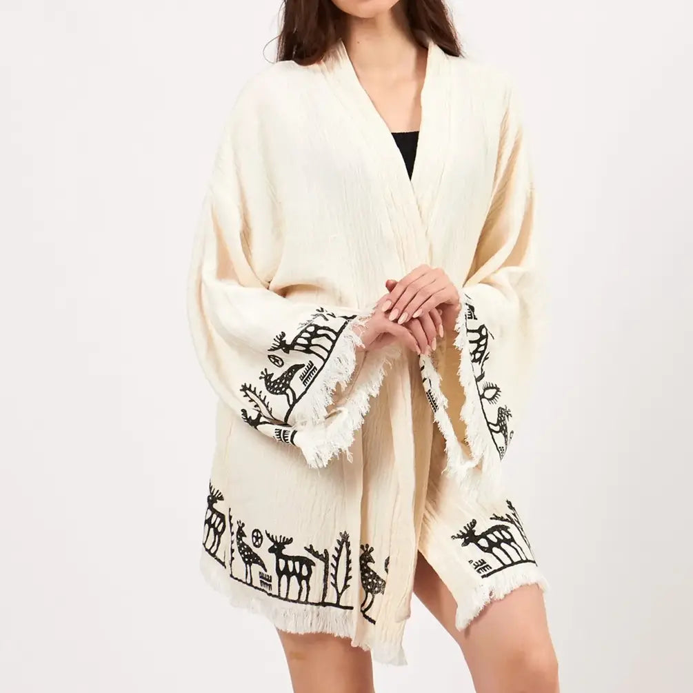 Organic Cotton Short Kimono, Short Kaftan, Boho Robe Women