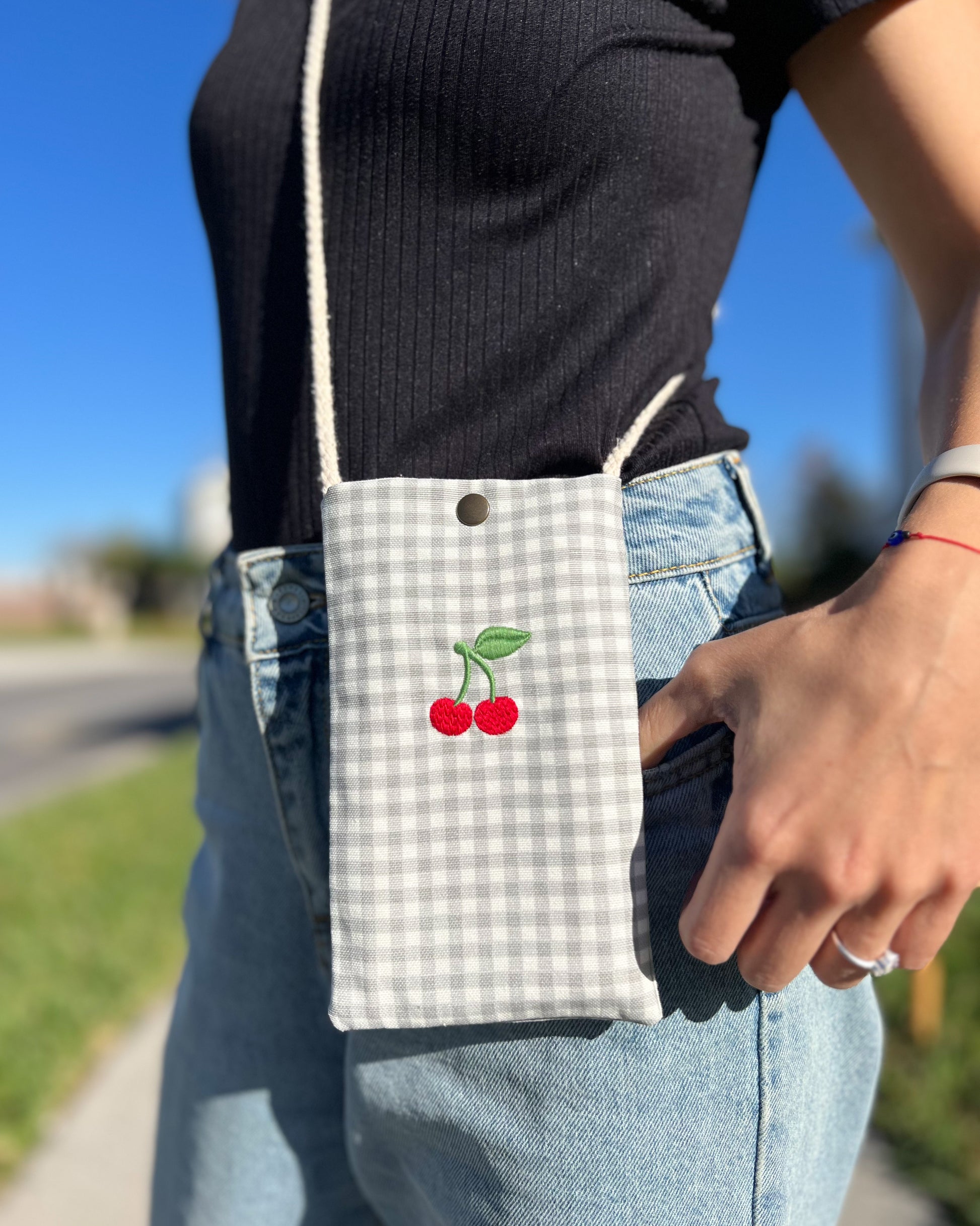 Cherry Phone Bag, Embroidery Purse, Small Bag for Travel