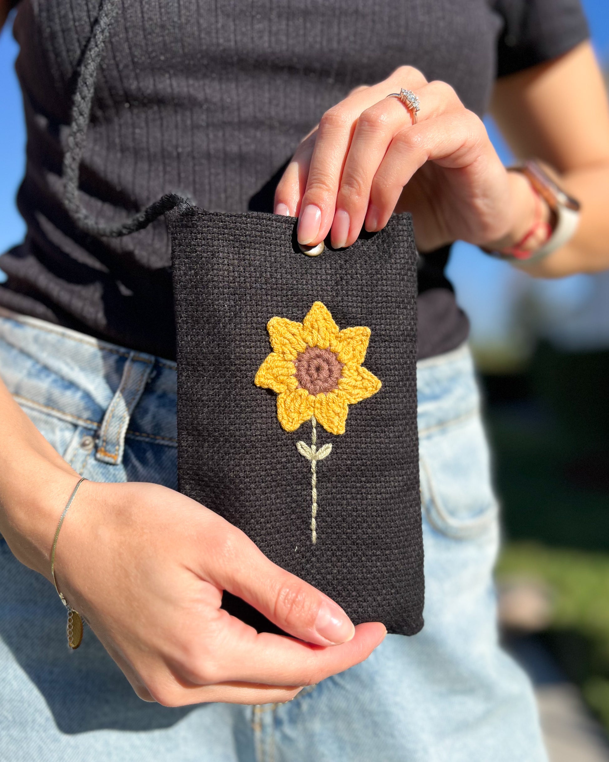 Cute Small Phone Bag, Sunflower Phone Bag, Embroidery Phone Bag