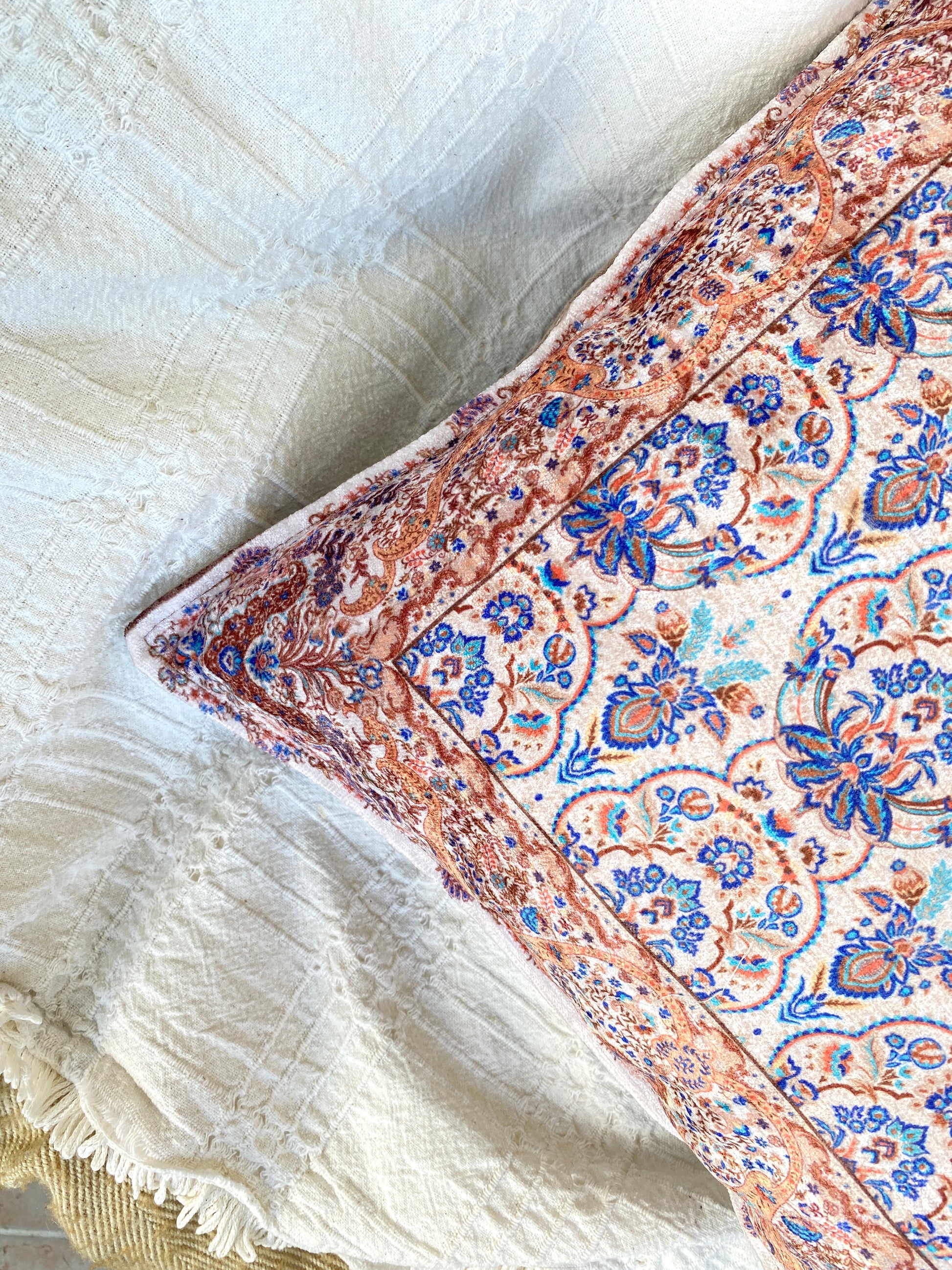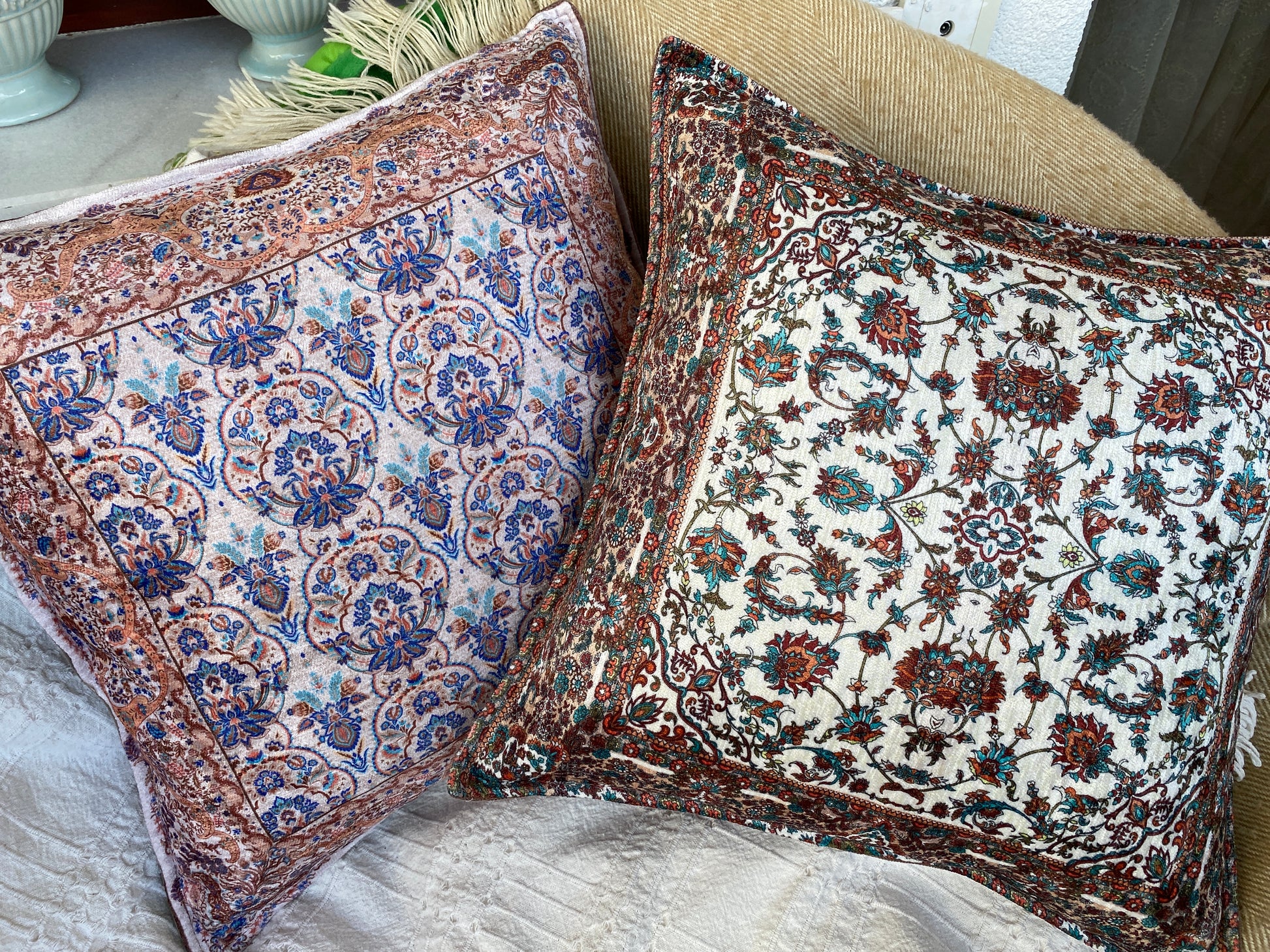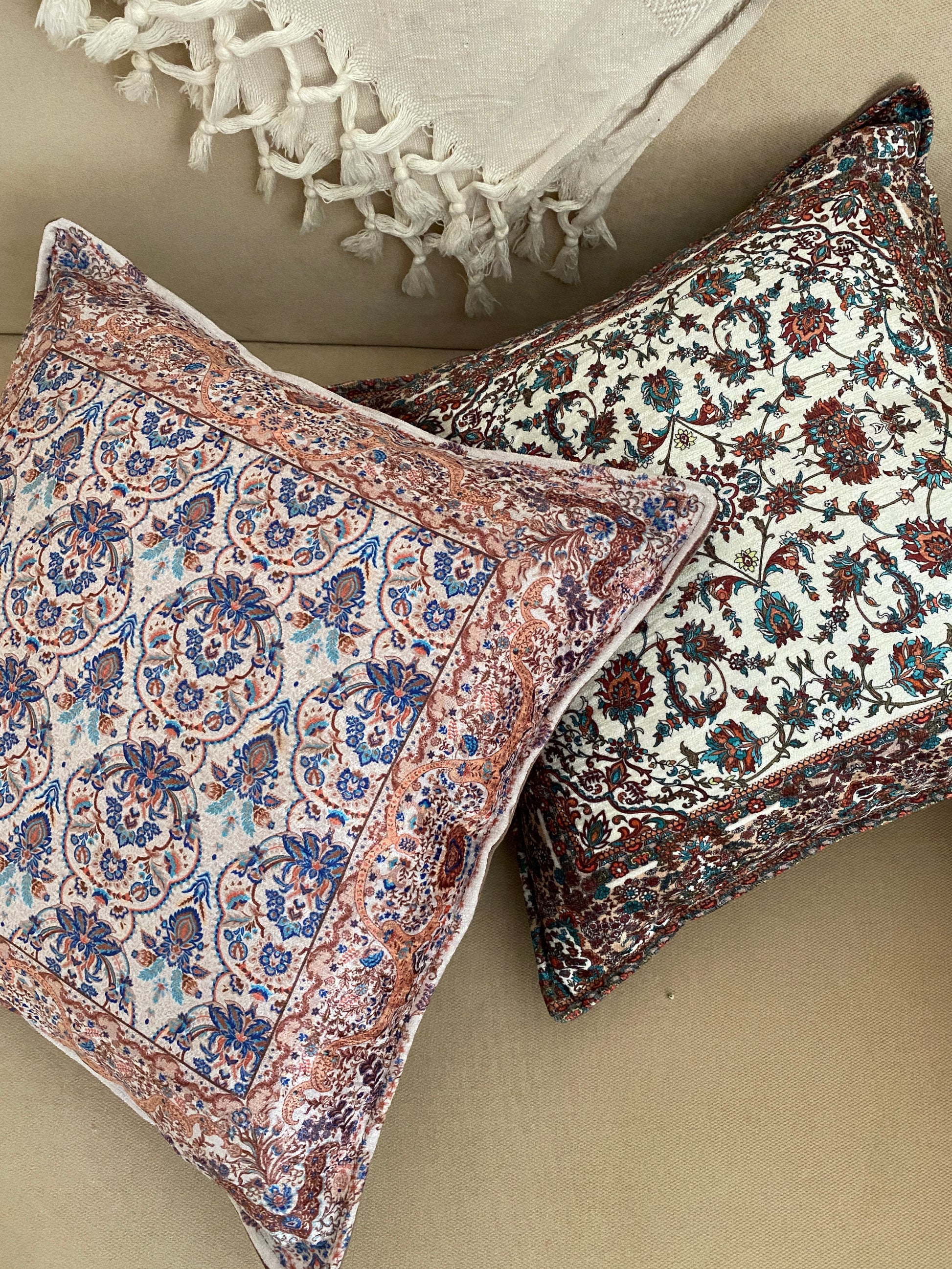 These soft and beautiful pillow covers are handmade in bohemian style. You can use these pillow covers on your beds, sofas, living room... Wherever you place these unique pillow covers, they will bring authenticity and elegance. You will love the soft and velvet like touch and vibrant colors of this beautiful carpet pattern designed pillow covers.