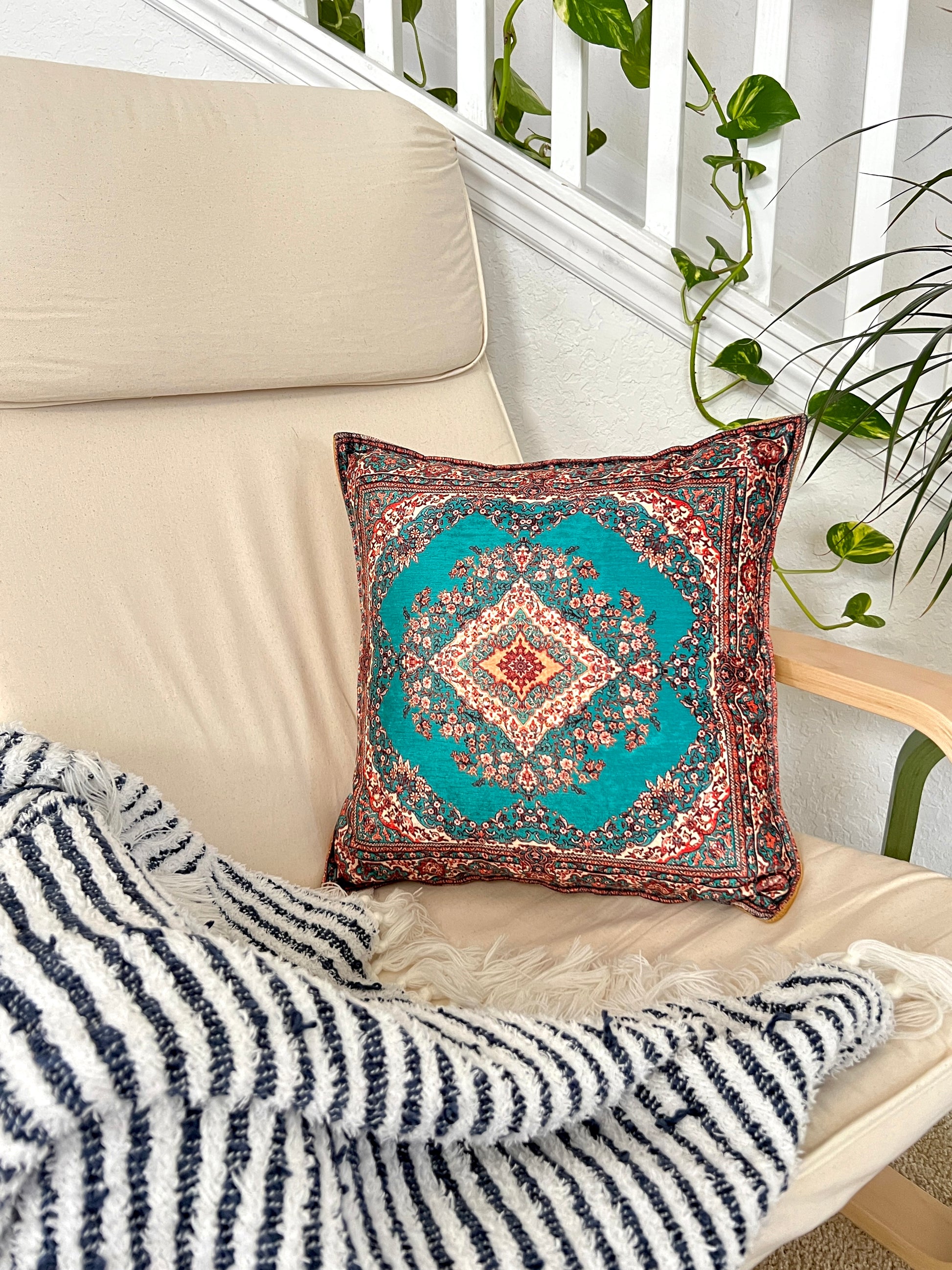 These soft and beautiful pillow covers are handmade in bohemian style. You can use these pillow covers on your beds, sofas, living room... Wherever you place these unique pillow covers, they will bring authenticity and elegance. You will love the soft and velvet like touch and vibrant colors of this beautiful carpet pattern designed pillow covers.