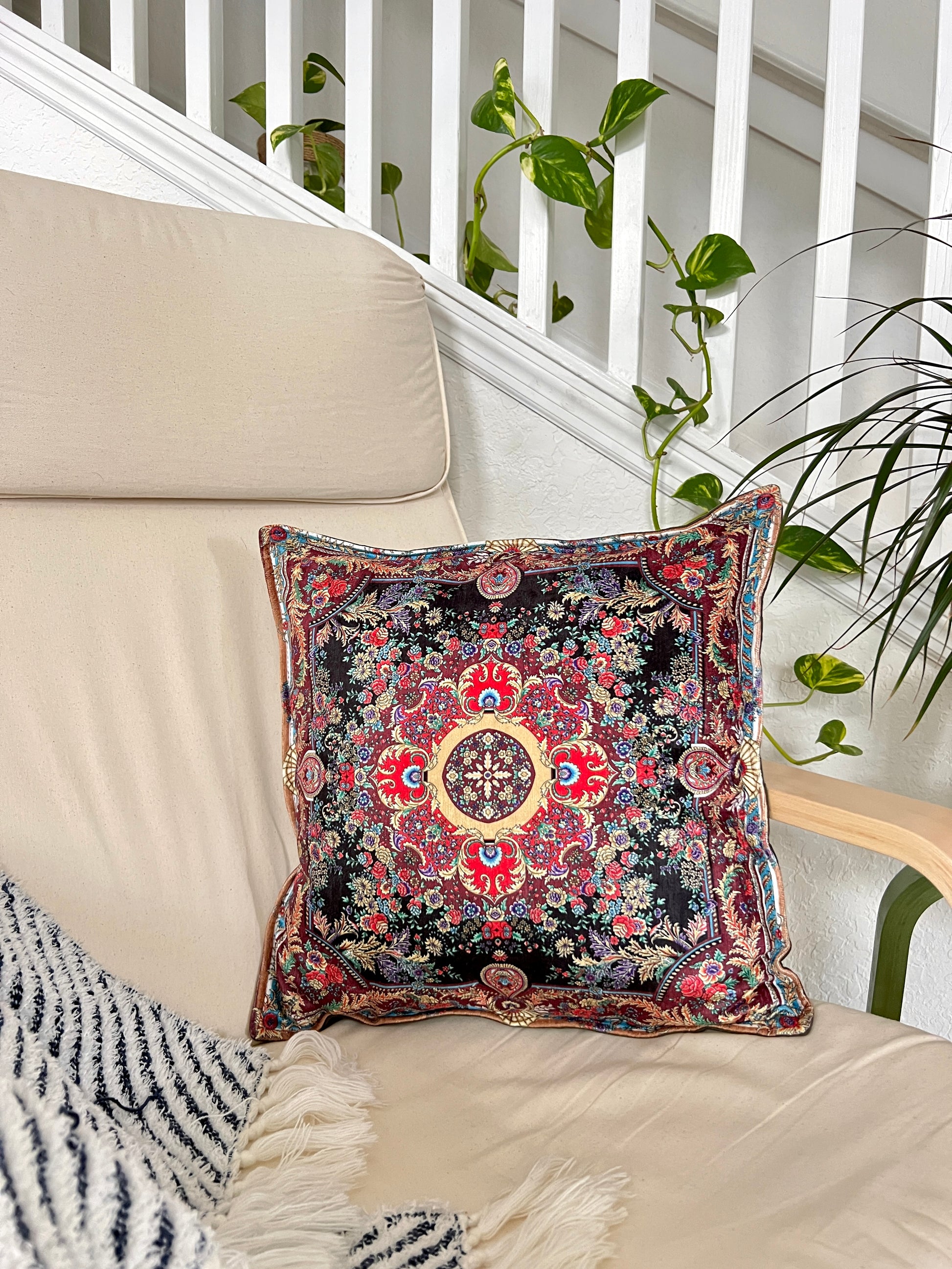 These soft and beautiful pillow covers are handmade in bohemian style. You can use these pillow covers on your beds, sofas, living room... Wherever you place these unique pillow covers, they will bring authenticity and elegance. You will love the soft and velvet like touch and vibrant colors of this beautiful carpet pattern designed pillow covers.