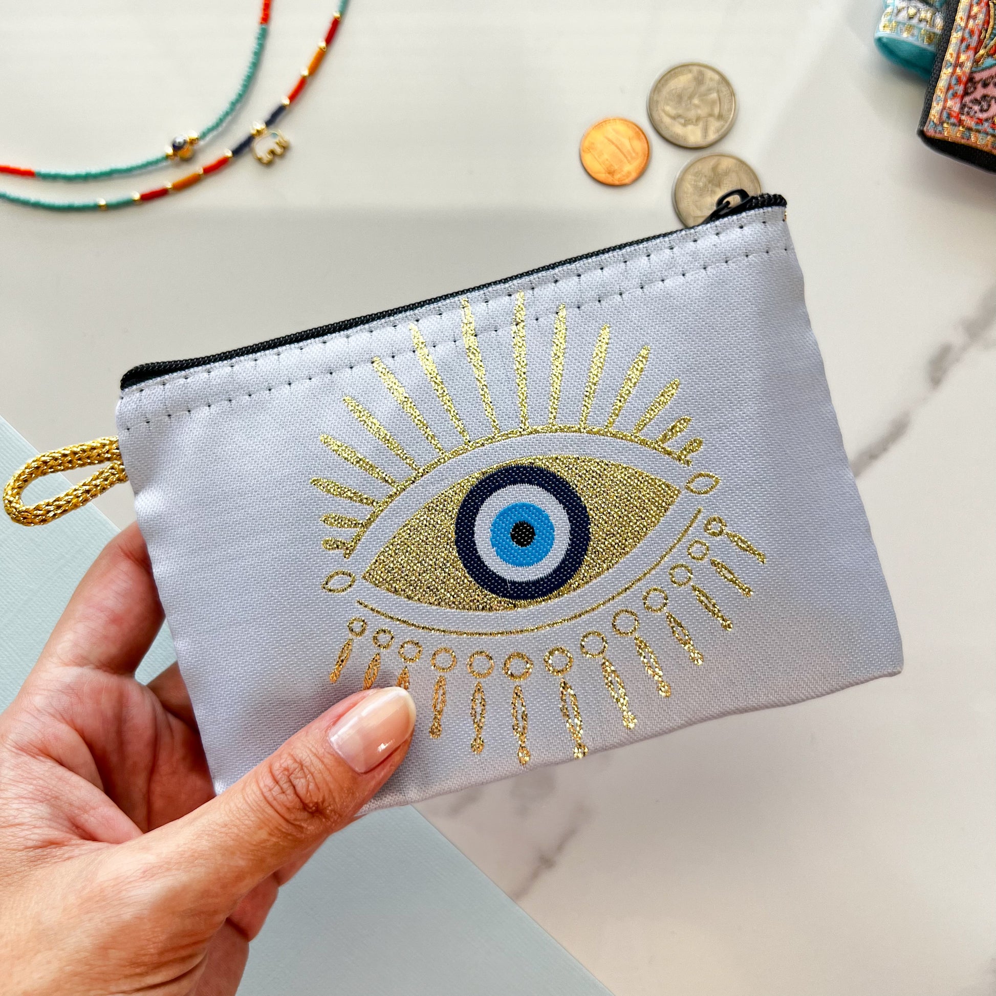 Evil Eye Zipper Pouch, Handmade Coin Purse