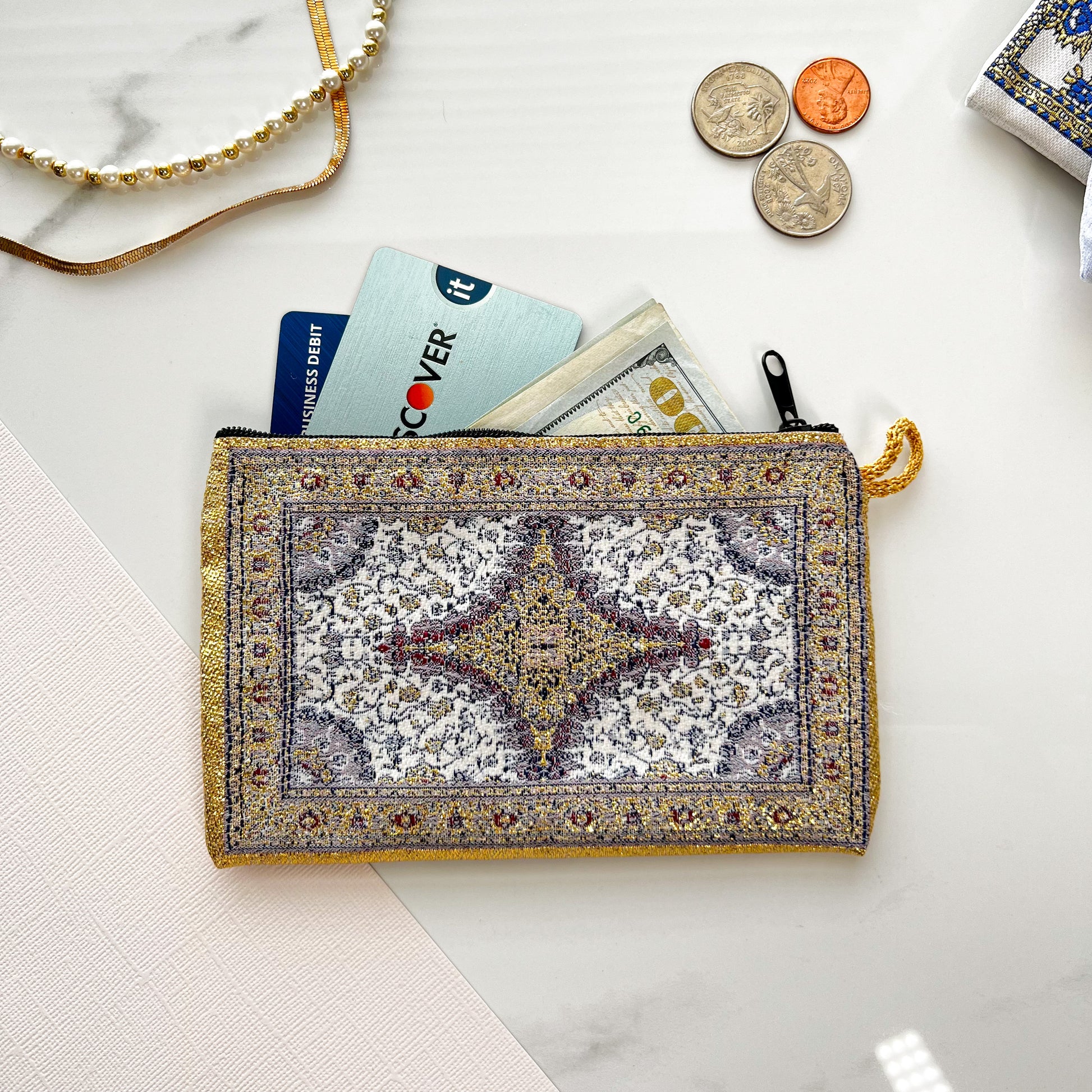 Made from gold threaded fabric featuring traditional rug designs of Turkey. Crafted from high-quality materials, our pouches feature a sturdy zippered closure that keeps your items secure and prevents them from falling out.