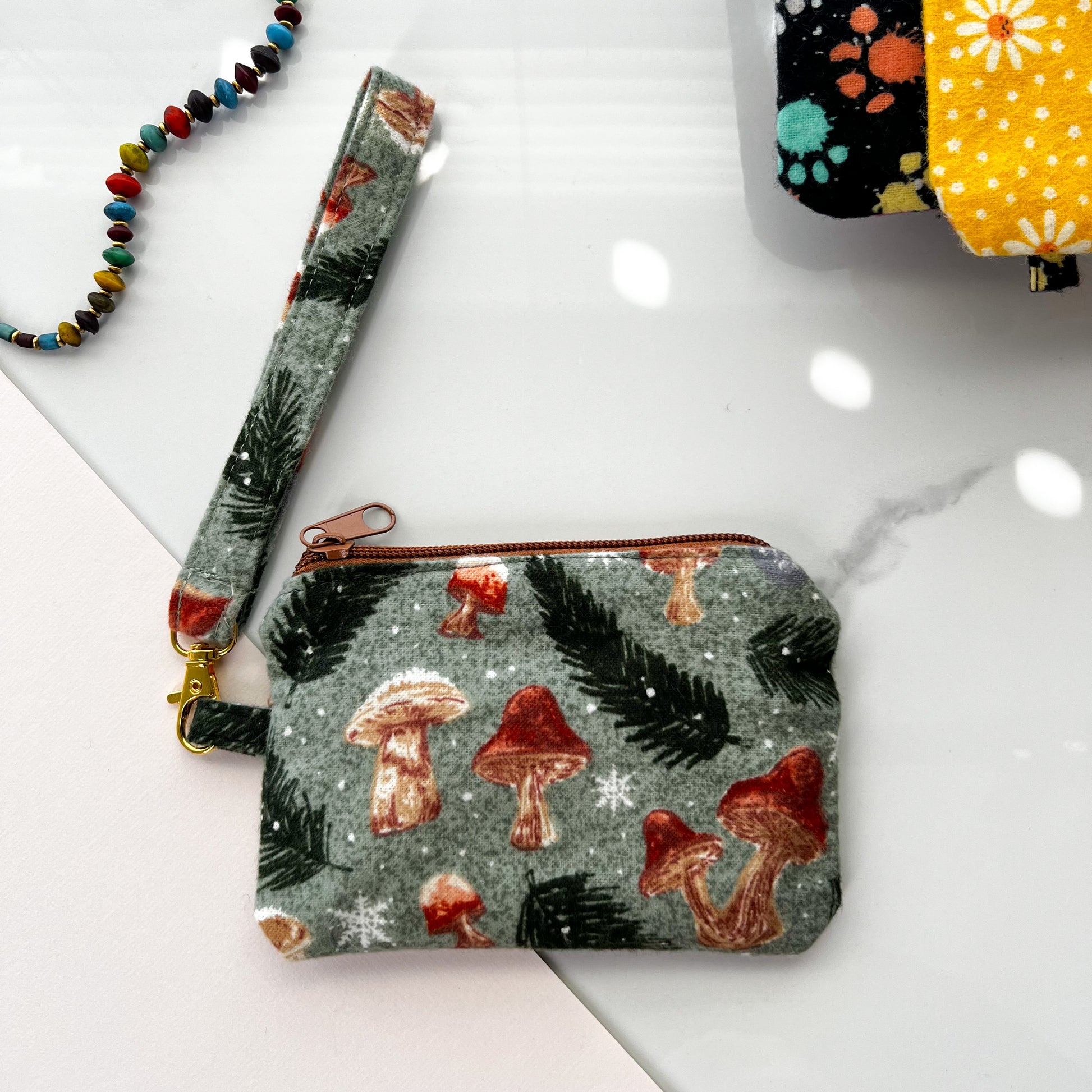 Our cute pouches are handmade from 100% cotton fabric. They also have cotton lining inside to give more strength. Our Wristlet is made with 3 layers of %100 cotton fabric and 1 layer of fusible fabric interface to make it durable and straight. Our wristlet has a lobster clasp so you can use with your keychain, bags, earbuds...